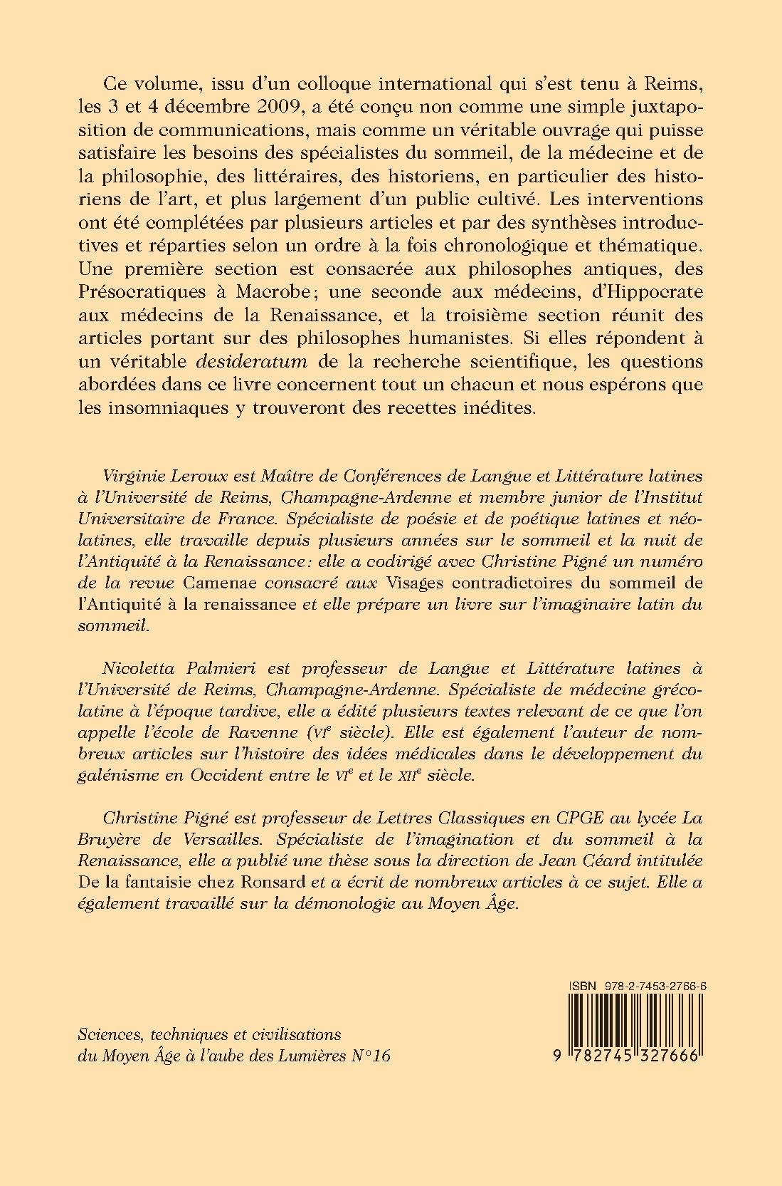 Ce volume, issu d’un colloque international qui s’est tenu à Reims, les 3 et 4 décembre 2009, a été conçu non comme une simple juxtaposition de communications, mais comme un véritable ouvrage qui puisse satisfaire les besoins des spécialistes du sommeil, de la médecine et de la philosophie, des littéraires, des historiens, en particulier des historiens de l’art, et plus largement d’un public cultivé. Les interventions ont été complétées par plusieurs articles et par des synthèses introductives et réparties selon un ordre à la fois chronologique et thématique. Une première section est consacrée aux philosophes antiques, des Présocratiques à Macrobe ; une seconde aux médecins, d’Hippocrate aux médecins de la Renaissance, et la troisième section réunit des articles portant sur des philosophes humanistes. Si elles répondent à un véritable desideratum de la recherche scientifique, les questions abordées dans ce livre concernent tout un chacun et nous espérons que les insomniaques y trouveront des recettes inédites.