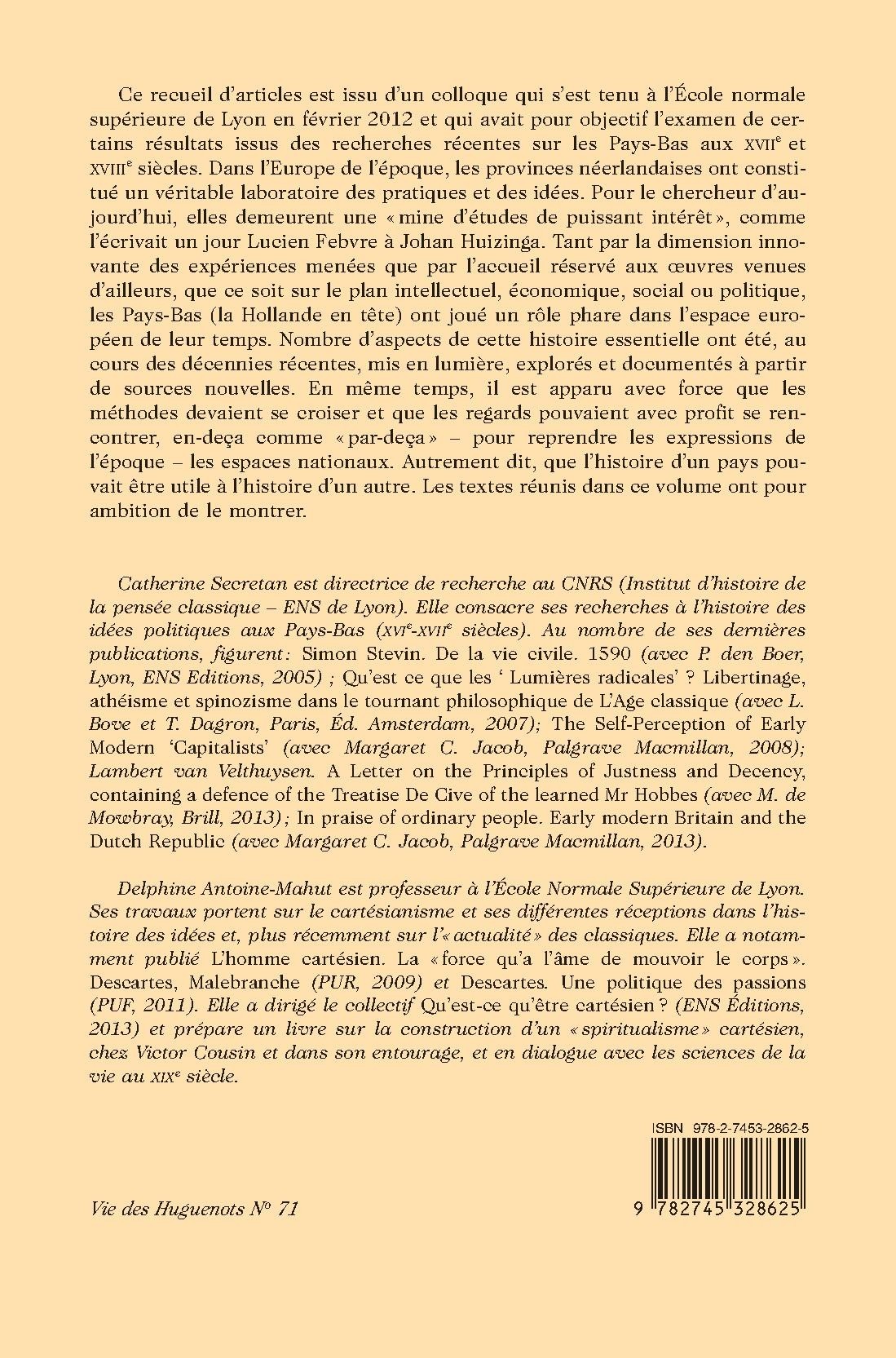 Ce recueil d’articles est issu d’un colloque qui s’est tenu à l’École normale supérieure de Lyon en février 2012 et qui avait pour objectif l’examen de certains résultats issus des recherches récentes sur les Pays-Bas aux XVIIe et XVIIIe siècles. Dans l’Europe de l’époque, les provinces néerlandaises ont constitué un véritable laboratoire des pratiques et des idées. Pour le chercheur d’aujourd’hui, elles demeurent une « mine d’études de puissant intérêt », comme l’écrivait un jour Lucien Febvre à Johan Huizinga. Tant par la dimension innovante des expériences menées que par l’accueil réservé aux œuvres venues d’ailleurs, que ce soit sur le plan intellectuel, économique, social ou politique, les Pays-Bas (la Hollande en tête) ont joué un rôle phare dans l’espace européen de leur temps. Nombre d’aspects de cette histoire essentielle ont été, au cours des décennies récentes, mis en lumière, explorés et documentés à partir de sources nouvelles. En même temps, il est apparu avec force que les méthodes devaient se croiser et que les regards pouvaient avec profit se rencontrer, en-deça comme « par-deça » – pour reprendre les expressions de l’époque – les espaces nationaux. Autrement dit, que l’histoire d’un pays pouvait être utile à l’histoire d’un autre. Les textes réunis dans ce volume ont pour ambition de le montrer.