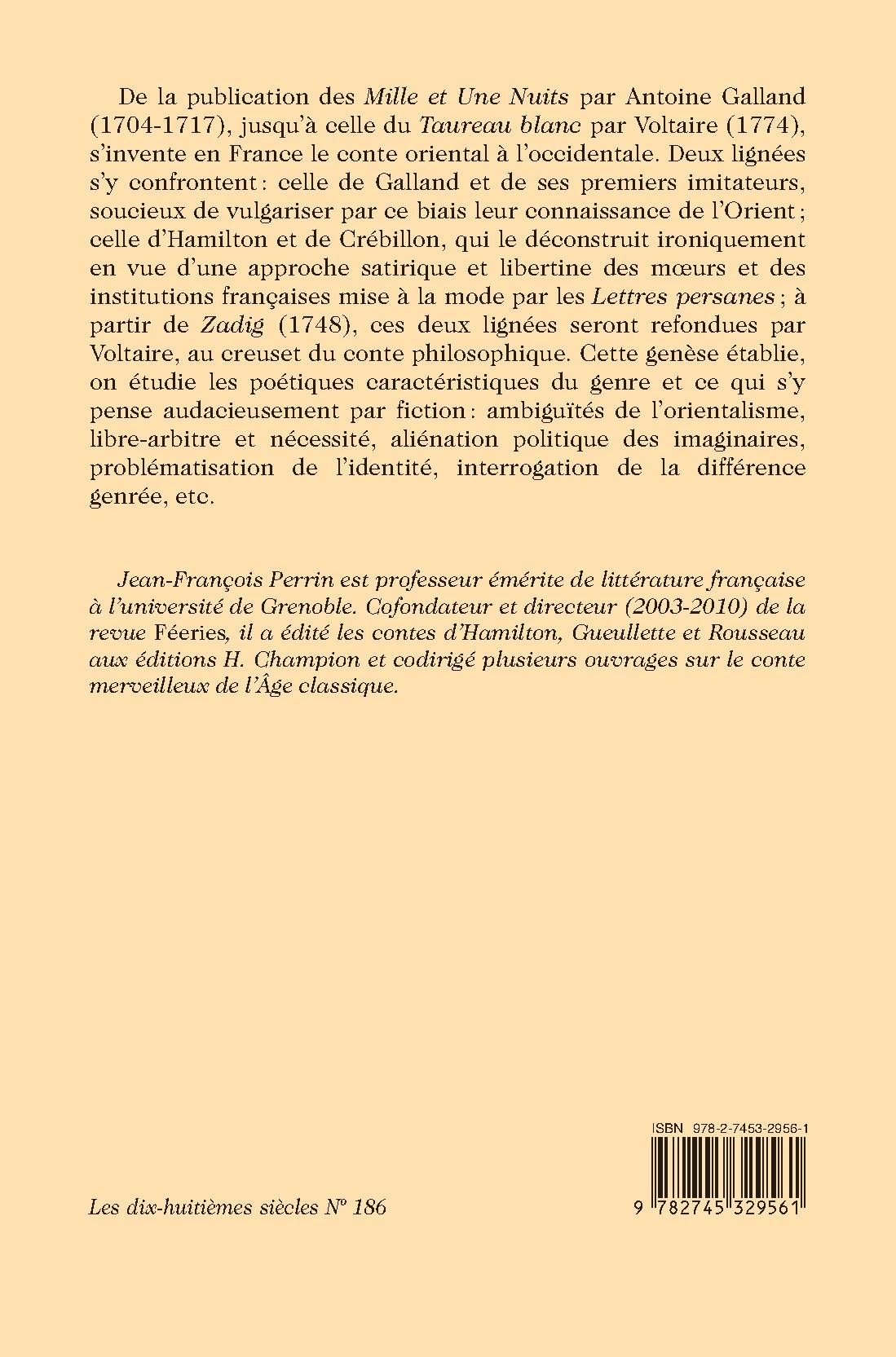De la publication des Mille et Une Nuits par Antoine Galland (1704-1717), jusqu’à celle du Taureau blanc par Voltaire (1774), s’invente en France le conte oriental à l’occidentale. Deux lignées s’y confrontent : celle de Galland et de ses premiers imitateurs, soucieux de vulgariser par ce biais leur connaissance de l’Orient ; celle d’Hamilton et de Crébillon, qui le déconstruit ironiquement en vue d’une approche satirique et libertine des mœurs et des institutions françaises mise à la mode par les Lettres persanes ; à partir de Zadig (1748), ces deux lignées seront refondues par Voltaire, au creuset du conte philosophique. Cette genèse établie, on étudie les poétiques caractéristiques du genre et ce qui s’y pense audacieusement par fiction : ambiguïtés de l’orientalisme, libre-arbitre et nécessité, aliénation politique des imaginaires, problématisation de l’identité, interrogation de la différence genrée, etc.
