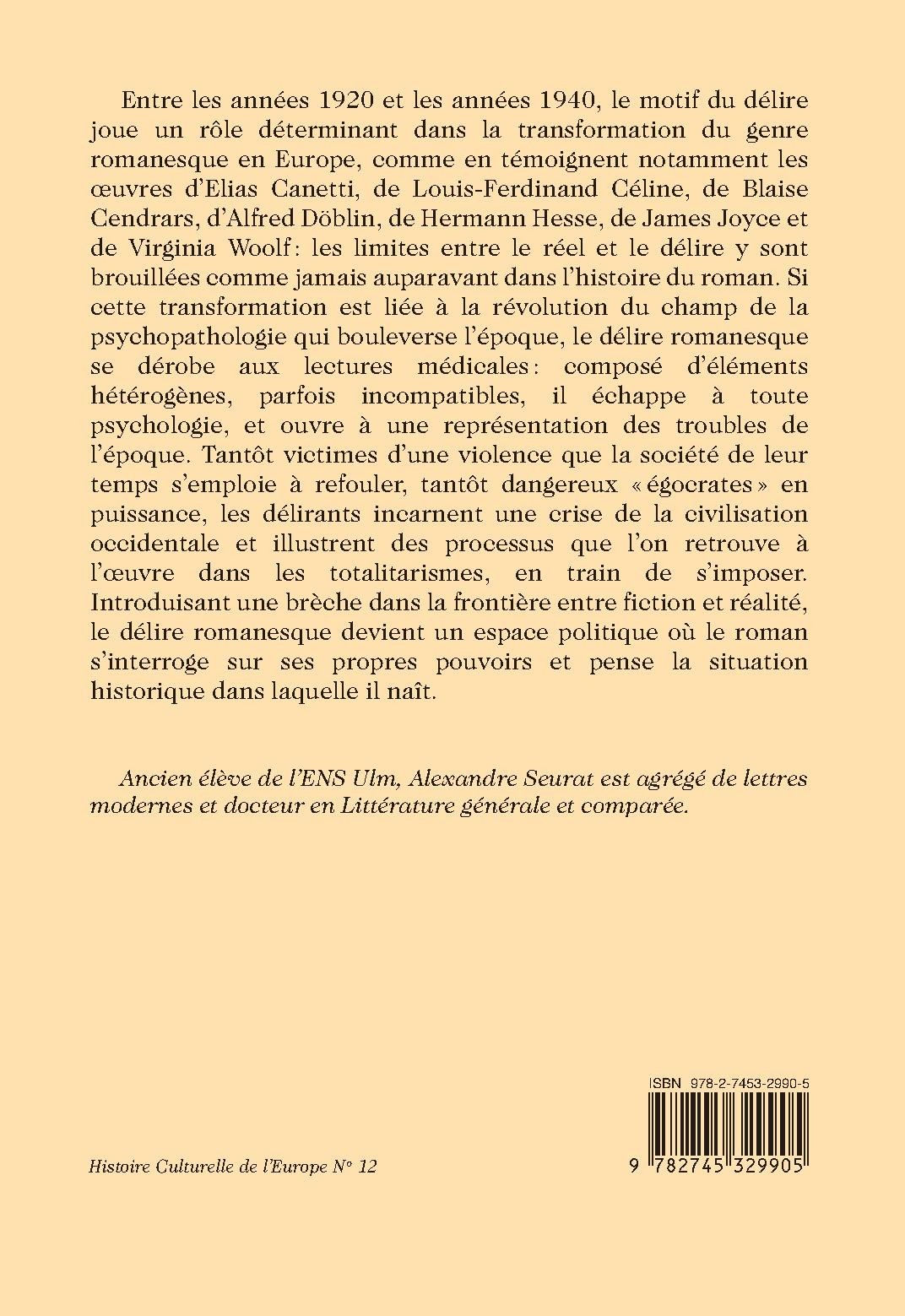 Entre les années 1920 et les années 1940, le motif du délire joue un rôle déterminant dans la transformation du genre romanesque en Europe, comme en témoignent notamment les œuvres d’Elias Canetti, de Louis-Ferdinand Céline, de Blaise Cendrars, d’Alfred Döblin, de Hermann Hesse, de James Joyce et de Virginia Woolf : les limites entre le réel et le délire y sont brouillées comme jamais auparavant dans l’histoire du roman. Si cette transformation est liée à la révolution du champ de la psychopathologie qui bouleverse l’époque, le délire romanesque se dérobe aux lectures médicales : composé d’éléments hétérogènes, parfois incompatibles, il échappe à toute psychologie, et ouvre à une représentation des troubles de l’époque. Tantôt victimes d’une violence que la société de leur temps s’emploie à refouler, tantôt dangereux « égocrates » en puissance, les délirants incarnent une crise de la civilisation occidentale et illustrent des processus que l’on retrouve à l’œuvre dans les totalitarismes, en train de s’imposer. Introduisant une brèche dans la frontière entre fiction et réalité, le délire romanesque devient un espace politique où le roman s’interroge sur ses propres pouvoirs et pense la situation historique dans laquelle il naît.