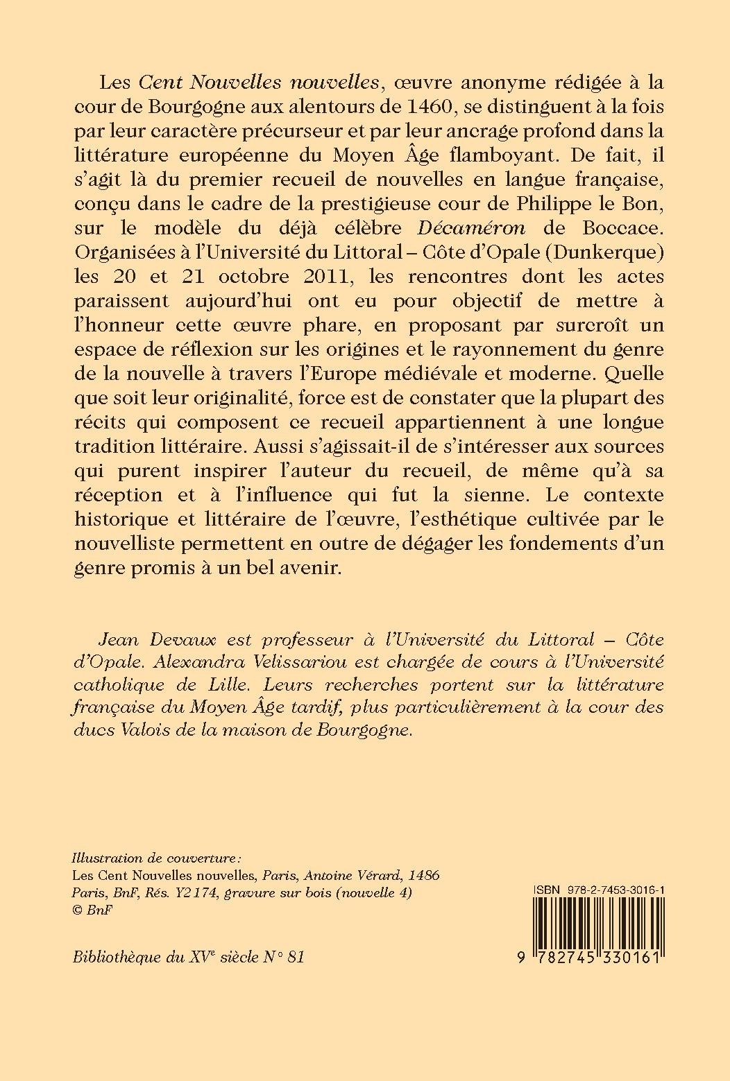 Les Cent Nouvelles nouvelles, œuvre anonyme rédigée à la cour de Bourgogne aux alentours de 1460, se distinguent à la fois par leur caractère précurseur et par leur ancrage profond dans la littérature européenne du Moyen Âge flamboyant. De fait, il s’agit là du premier recueil de nouvelles en langue française, conçu dans le cadre de la prestigieuse cour de Philippe le Bon, sur le modèle du déjà célèbre Décaméron de Boccace. Organisées à l’Université du Littoral – Côte d’Opale (Dunkerque) les 20 et 21 octobre 2011, les rencontres dont les actes paraissent aujourd’hui ont eu pour objectif de mettre à l’honneur cette œuvre phare, en proposant par surcroît un espace de réflexion sur les origines et le rayonnement du genre de la nouvelle à travers l’Europe médiévale et moderne. Quelle que soit leur originalité, force est de constater que la plupart des récits qui composent ce recueil appartiennent à une longue tradition littéraire. Aussi s’agissait-il de s’intéresser aux sources qui purent inspirer l’auteur du recueil, de même qu’à sa réception et à l’influence qui fut la sienne. Le contexte historique et littéraire de l’œuvre, l’esthétique cultivée par le nouvelliste permettent en outre de dégager les fondements d’un genre promis à un bel avenir.