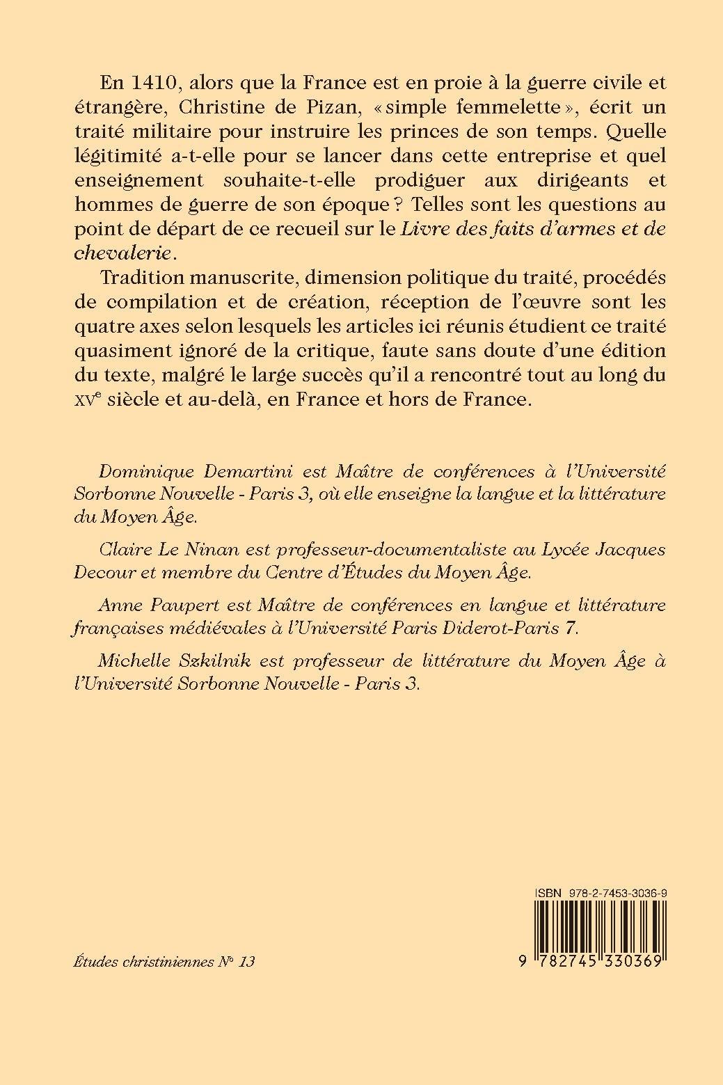 En 1410, alors que la France est en proie à la guerre civile et étrangère, Christine de Pizan, « simple femmelette », écrit un traité militaire pour instruire les princes de son temps. Quelle légitimité a-t-elle pour se lancer dans cette entreprise et quel enseignement souhaite-t-elle prodiguer aux dirigeants et hommes de guerre de son époque ? Telles sont les questions au point de départ de ce recueil sur le Livre des faits d’armes et de chevalerie.