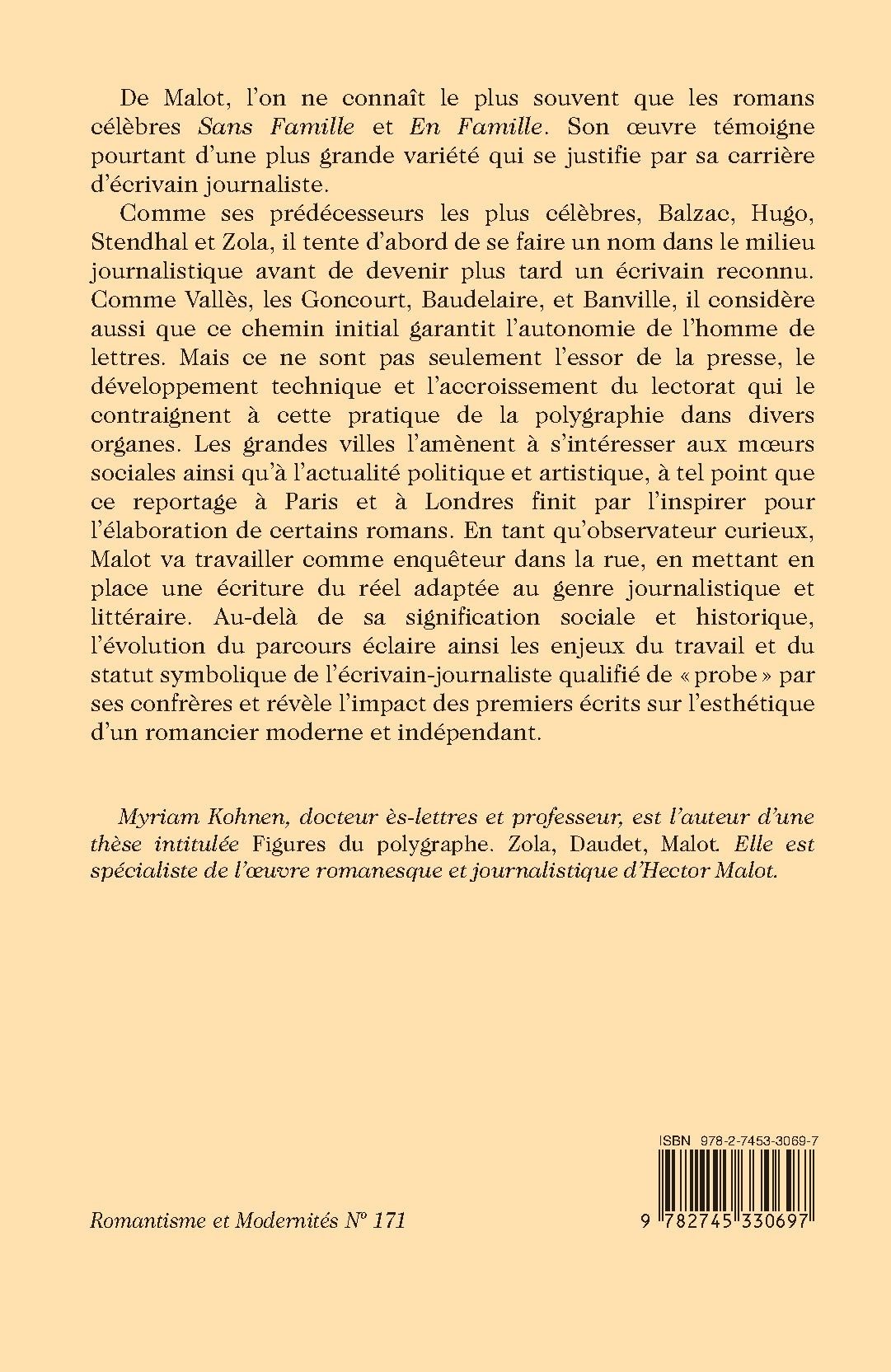 Comme ses prédécesseurs les plus célèbres, Balzac, Hugo, Stendhal et Zola, il tente d’abord de se faire un nom dans le milieu journalistique avant de devenir plus tard un écrivain reconnu. Comme Vallès, les Goncourt, Baudelaire, et Banville, il considère aussi que ce chemin initial garantit l’autonomie de l’homme de lettres. Mais ce ne sont pas seulement l’essor de la presse, le développement technique et l’accroissement du lectorat qui le contraignent à cette pratique de la polygraphie dans divers organes. Les grandes villes l’amènent à s’intéresser aux mœurs sociales ainsi qu’à l’actualité politique et artistique, à tel point que ce reportage à Paris et à Londres finit par l’inspirer pour l’élaboration de certains romans. En tant qu’observateur curieux, Malot va travailler comme enquêteur dans la rue, en mettant en place une écriture du réel adaptée au genre journalistique et littéraire. Au-delà de sa signification sociale et historique, l’évolution du parcours éclaire ainsi les enjeux du travail et du statut symbolique de l’écrivain-journaliste qualifié de « probe » par ses confrères et révèle l’impact des premiers écrits sur l’esthétique d’un romancier moderne et indépendant.