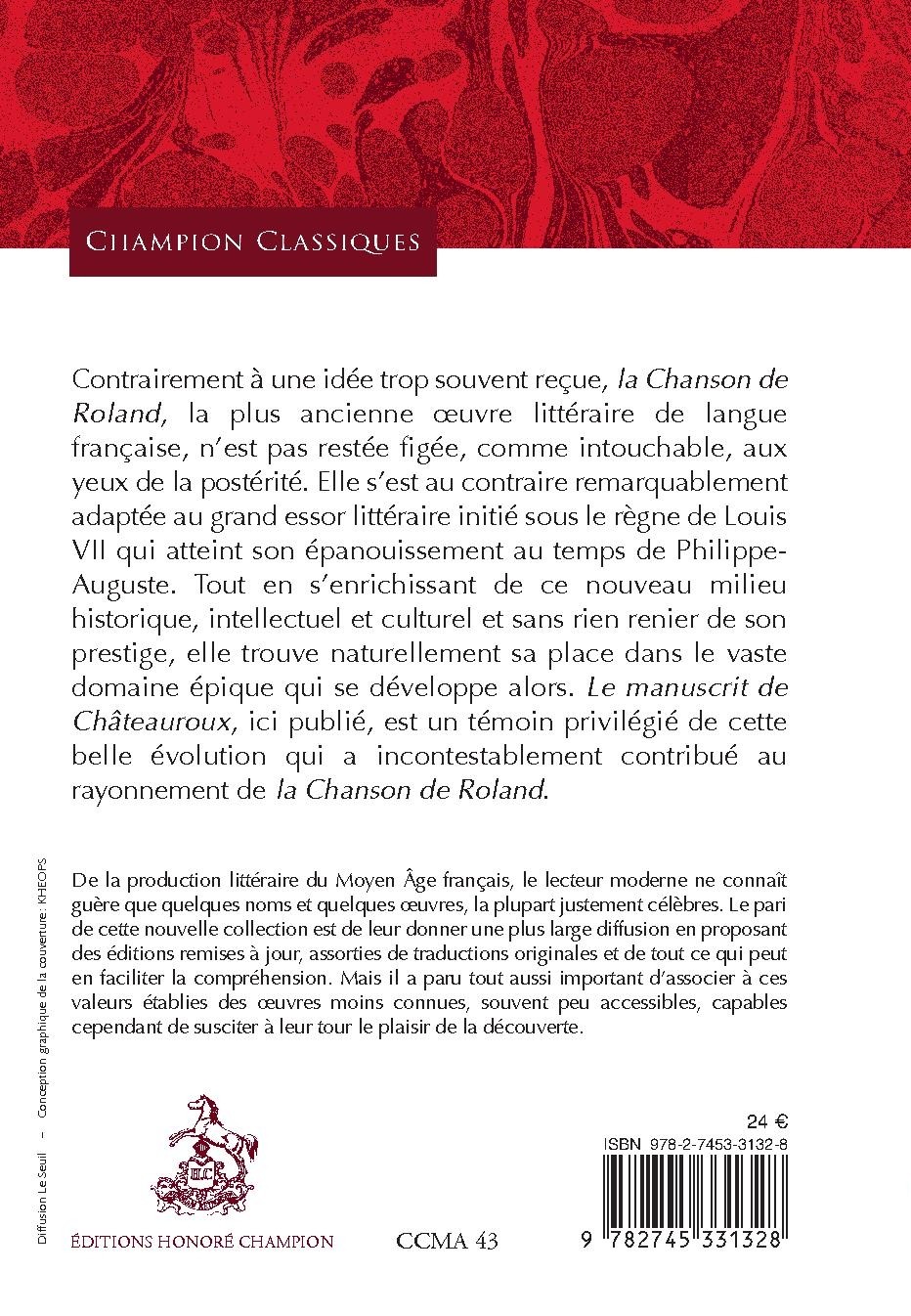 Contrairement à une idée trop souvent reçue, la Chanson de Roland, la plus ancienne oeuvre littéraire de langue française, n’est pas restée figée, comme intouchable, aux yeux de la postérité. Elle s’est au contraire remarquablement adaptée au grand essor littéraire initié sous le règne de Louis VII qui atteint son épanouissement au temps de Philippe- Auguste. Tout en s’enrichissant de ce nouveau milieu historique, intellectuel et culturel et sans rien renier de son prestige, elle trouve naturellement sa place dans le vaste domaine épique qui se développe alors. Le manuscrit de Châteauroux, ici publié, est un témoin privilégié de cette belle évolution qui a incontestablement contribué au rayonnement de la Chanson de Roland.
