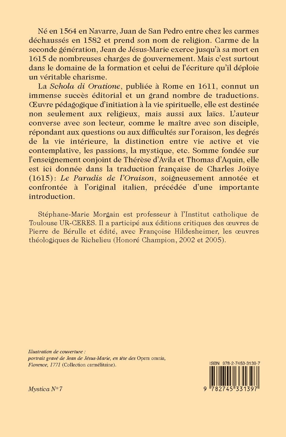 La Schola di Oratione, publiée à Rome en 1611, connut un immense succès éditorial et un grand nombre de traductions. Oeuvre pédagogique d’initiation à la vie spirituelle, elle est destinée non seulement aux religieux, mais aussi aux laïcs. L’auteur converse avec son lecteur, comme le maître avec son disciple, répondant aux questions ou aux difficultés sur l’oraison, les degrés de la vie intérieure, la distinction entre vie active et vie contemplative, les passions, la mystique, etc. Somme fondée sur l’enseignement conjoint de Thérèse d’Avila et Thomas d’Aquin, elle est ici donnée dans la traduction française de Charles Joüye (1615) : Le Paradis de l’Oraison, soigneusement annotée et confrontée à l’original italien, précédée d’une importante introduction.