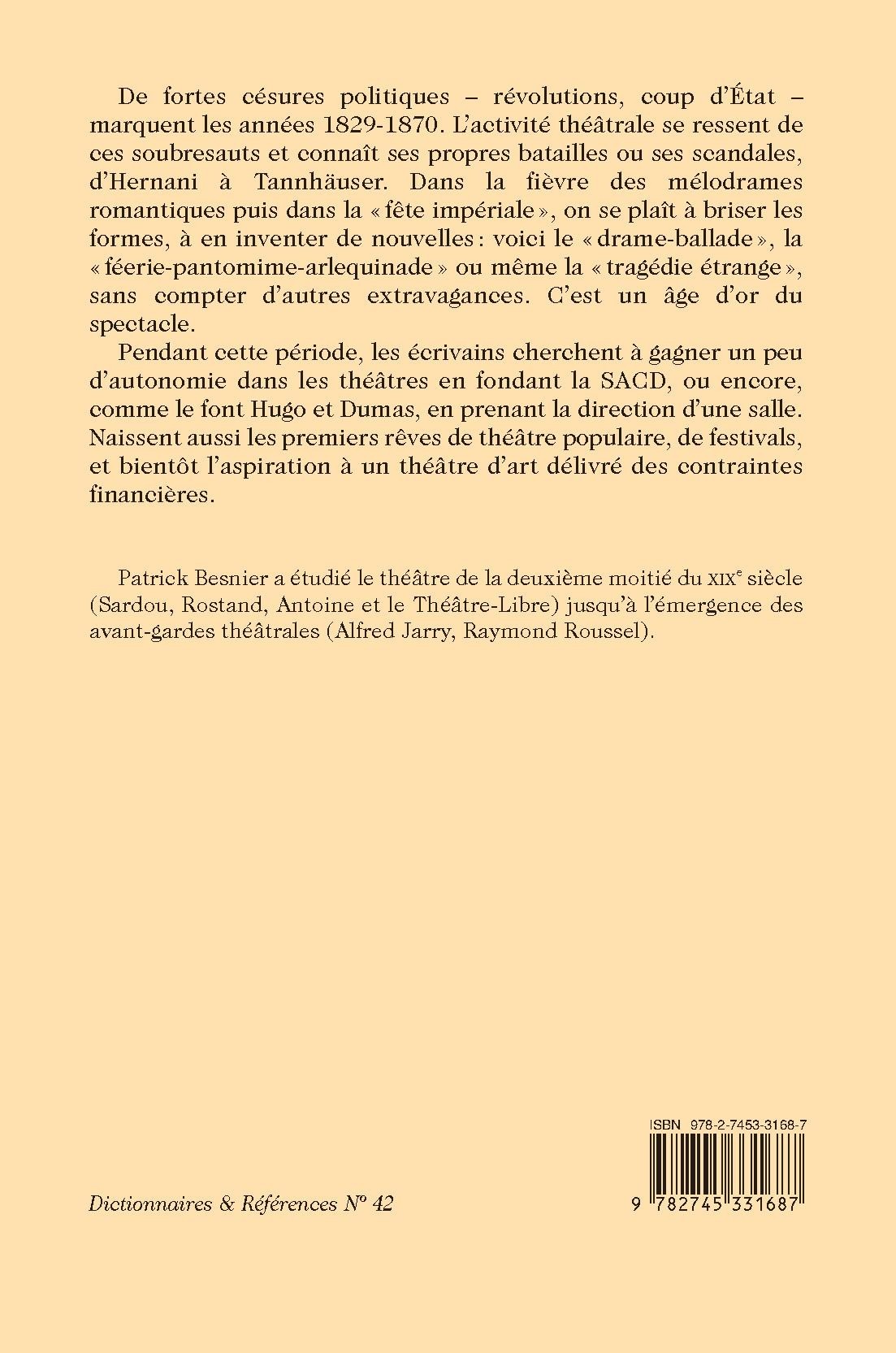 De fortes césures politiques – révolutions, coup d’État – marquent les années 1829-1870. L’activité théâtrale se ressent de ces soubresauts et connaît ses propres batailles ou ses scandales, d’Hernani à Tannhäuser. Dans la fièvre des mélodrames romantiques puis dans la « fête impériale », on se plaît à briser les formes, à en inventer de nouvelles : voici le « drame-ballade », la « féerie-pantomime-arlequinade » ou même la « tragédie étrange », sans compter d’autres extravagances. C’est un âge d’or du spectacle.