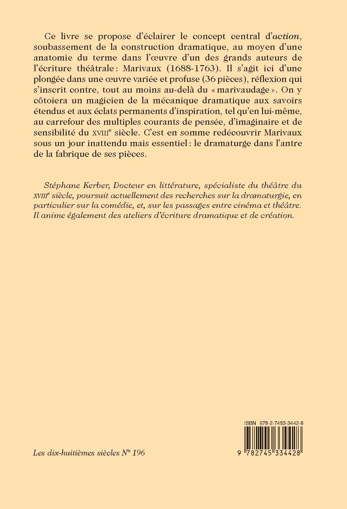 Ce livre se propose d’éclairer le concept central d’action, soubassement de la construction dramatique, au moyen d’une anatomie du terme dans l’oeuvre d’un des grands auteurs de l’écriture théâtrale : Marivaux (1688-1763). Il s’agit ici d’une plongée dans une oeuvre variée et profuse (36 pièces), réflexion qui s’inscrit contre, tout au moins au-delà du « marivaudage ». On y côtoiera un magicien de la mécanique dramatique aux savoirs étendus et aux éclats permanents d’inspiration, tel qu’en lui-même, au carrefour des multiples courants de pensée, d’imaginaire et de sensibilité du XVIIIe siècle. C’est en somme redécouvrir Marivaux sous un jour inattendu mais essentiel : le dramaturge dans l’antre de la fabrique de ses pièces.