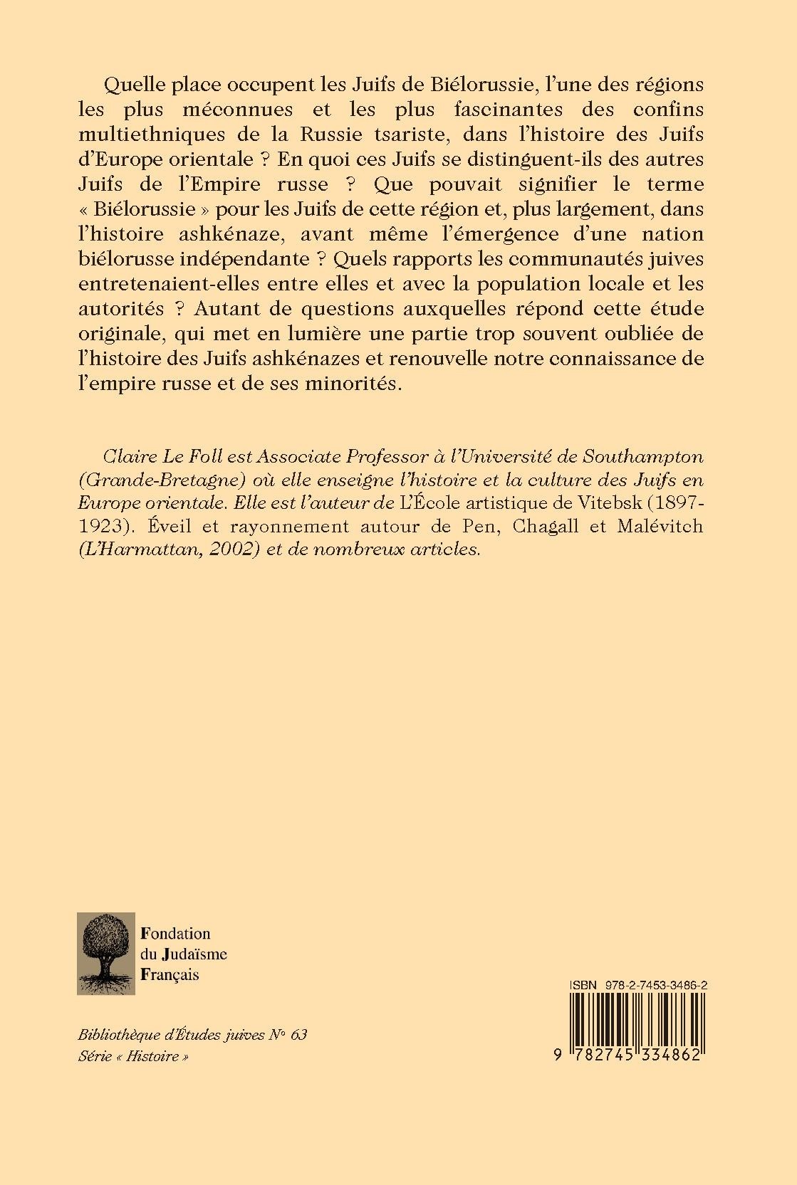 Quelle place occupent les Juifs de Biélorussie, l’une des régions les plus méconnues et les plus fascinantes des confins multiethniques de la Russie tsariste, dans l’histoire des Juifs d’Europe orientale ? En quoi ces Juifs se distinguent -ils des autres Juifs de l’Empire russe ? Que pouvait signifier le terme « Biélorussie » pour les Juifs de cette région et, plus largement, dans l’histoire ashkénaze, avant même l’émergence d’une nation biélorusse indépendante ? Quels rapports les communautés juives entretenaient-elles entre elles et avec la population locale et les autorités ? Autant de questions auxquelles répond cette étude originale, qui met en lumière une partie trop souvent oubliée de l’histoire des Juifs ashkénazes et renouvelle notre connaissance de l’empire russe et de ses minorités.