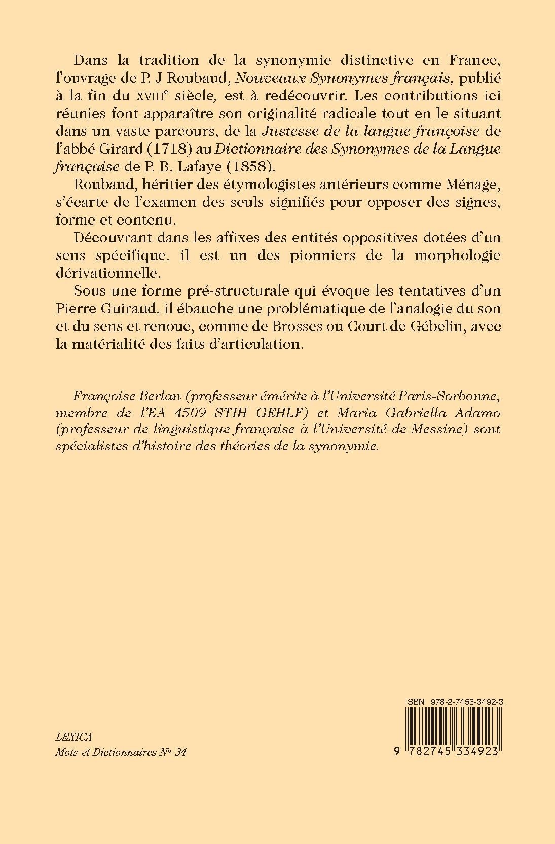 Dans la tradition de la synonymie distinctive en France, l’ouvrage de P. J Roubaud, Nouveaux Synonymes français, publié à la fin du XVIIIe siècle, est à redécouvrir. Les contributions ici réunies font apparaître son originalité radicale tout en le situant dans un vaste parcours, de la Justesse de la langue françoise de l’abbé Girard (1718) au Dictionnaire des Synonymes de la Langue française de P. B. Lafaye (1858).