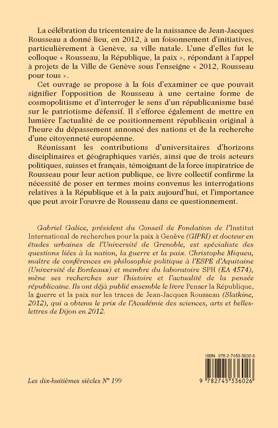 La célébration du tricentenaire de la naissance de Jean-Jacques Rousseau a donné lieu, en 2012, à un foisonnement d’initiatives, particulièrement à Genève, sa ville natale. L’une d’elles fut le colloque « Rousseau, la République, la paix », répondant à l’appel à projets de la Ville de Genève sous l’enseigne « 2012, Rousseau pour tous ».