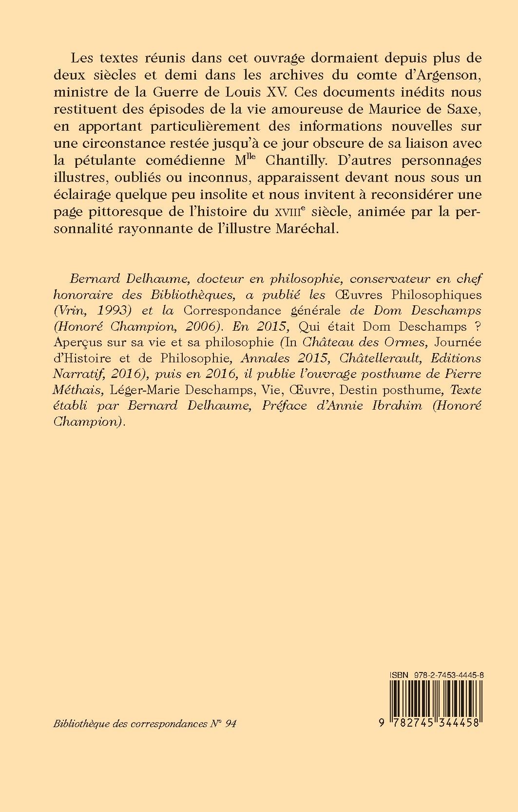 Les textes réunis dans cet ouvrage dormaient depuis plus de deux siècles et demi dans les archives du comte d’Argenson, ministre de la Guerre de Louis XV. Ces documents inédits nous restituent des épisodes de la vie amoureuse de Maurice de Saxe, en apportant particulièrement des informations nouvelles sur une circonstance restée jusqu’à ce jour obscure de sa liaison avec la pétulante comédienne Mlle Chantilly. D’autres personnages illustres, oubliés ou inconnus, apparaissent devant nous sous un éclairage quelque peu insolite et nous invitent à reconsidérer une page pittoresque de l’histoire du XVIIIe siècle, animée par la personnalité rayonnante de l’illustre Maréchal.