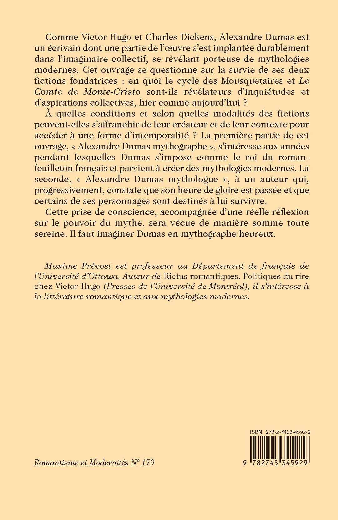 Comme Victor Hugo et Charles Dickens, Alexandre Dumas est un écrivain dont une partie de l’oeuvre s’est implantée durablement dans l’imaginaire collectif, se révélant porteuse de mythologies modernes. Cet ouvrage se questionne sur la survie de ses deux fictions fondatrices : en quoi le cycle des Mousquetaires et Le Comte de Monte-Cristo sont-ils révélateurs d’inquiétudes et d’aspirations collectives, hier comme aujourd’hui ?