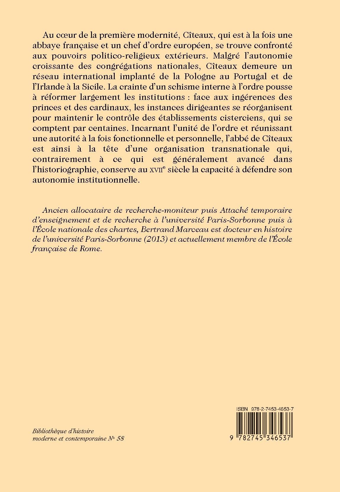 Au cœur de la première modernité, Cîteaux, qui est à la fois une abbaye française et un chef d’ordre européen, se trouve confronté aux pouvoirs politico-religieux extérieurs. Malgré l’autonomie croissante des congrégations nationales, Cîteaux demeure un réseau international implanté de la Pologne au Portugal et de l’Irlande à la Sicile. La crainte d’un schisme interne à l’ordre pousse à réformer largement les institutions : face aux ingérences des princes et des cardinaux, les instances dirigeantes se réorganisent pour maintenir le contrôle des établissements cisterciens, qui se comptent par centaines. Incarnant l’unité de l’ordre et réunissant une autorité à la fois fonctionnelle et personnelle, l’abbé de Cîteaux est ainsi à la tête d’une organisation transnationale qui, contrairement à ce qui est généralement avancé dans l’historiographie, conserve au XVIIe siècle la capacité à défendre son autonomie institutionnelle.