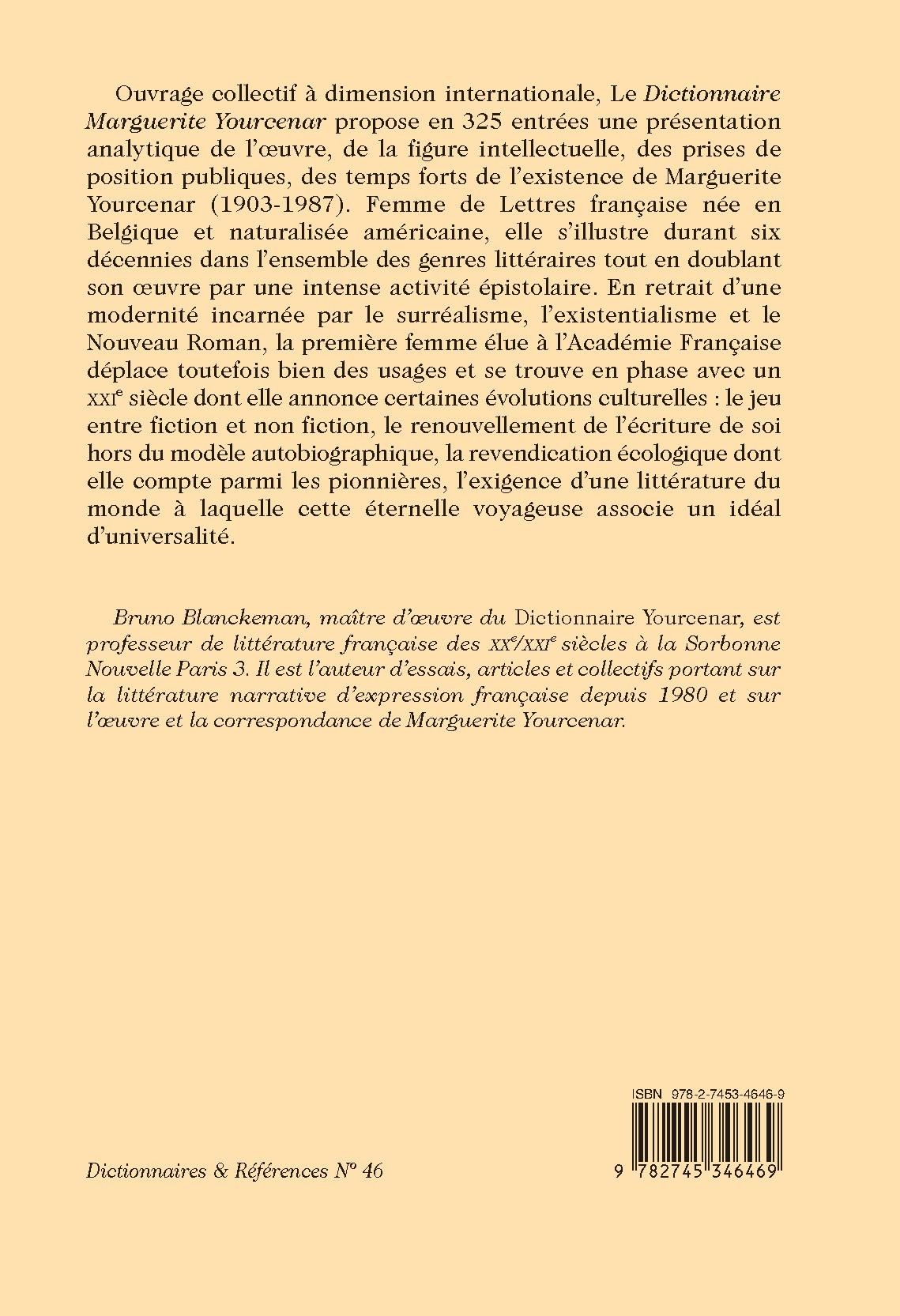 Bruno Blanckeman, maître d’oeuvre du Dictionnaire Yourcenar, est professeur de littérature française des XXe/XXIe siècles à la Sorbonne Nouvelle Paris 3. Il est l’auteur d’essais, articles et collectifs portant sur la littérature narrative d’expression française depuis 1980 et sur l’oeuvre et la correspondance de Marguerite Yourcenar.