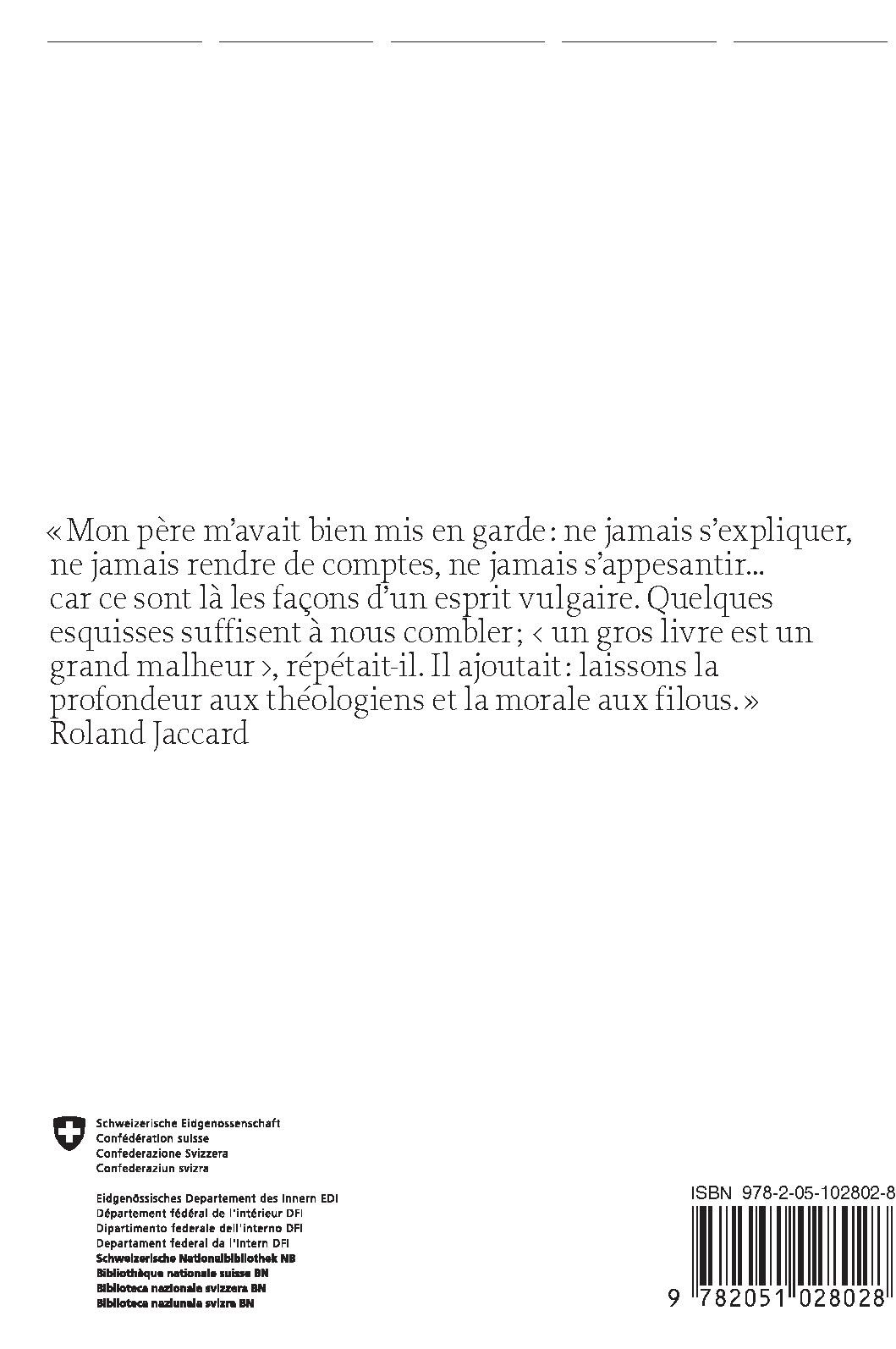 « Mon père m’avait bien mis en garde : ne jamais s’expliquer, ne jamais rendre de comptes, ne jamais s’appesantir…car ce sont là les façons d’un esprit vulgaire. Quelques esquisses suffisent à nous combler ; < un gros livre est un grand malheur >, répétait-il. Il ajoutait : laissons la profondeur aux théologiens et la morale aux filous. »