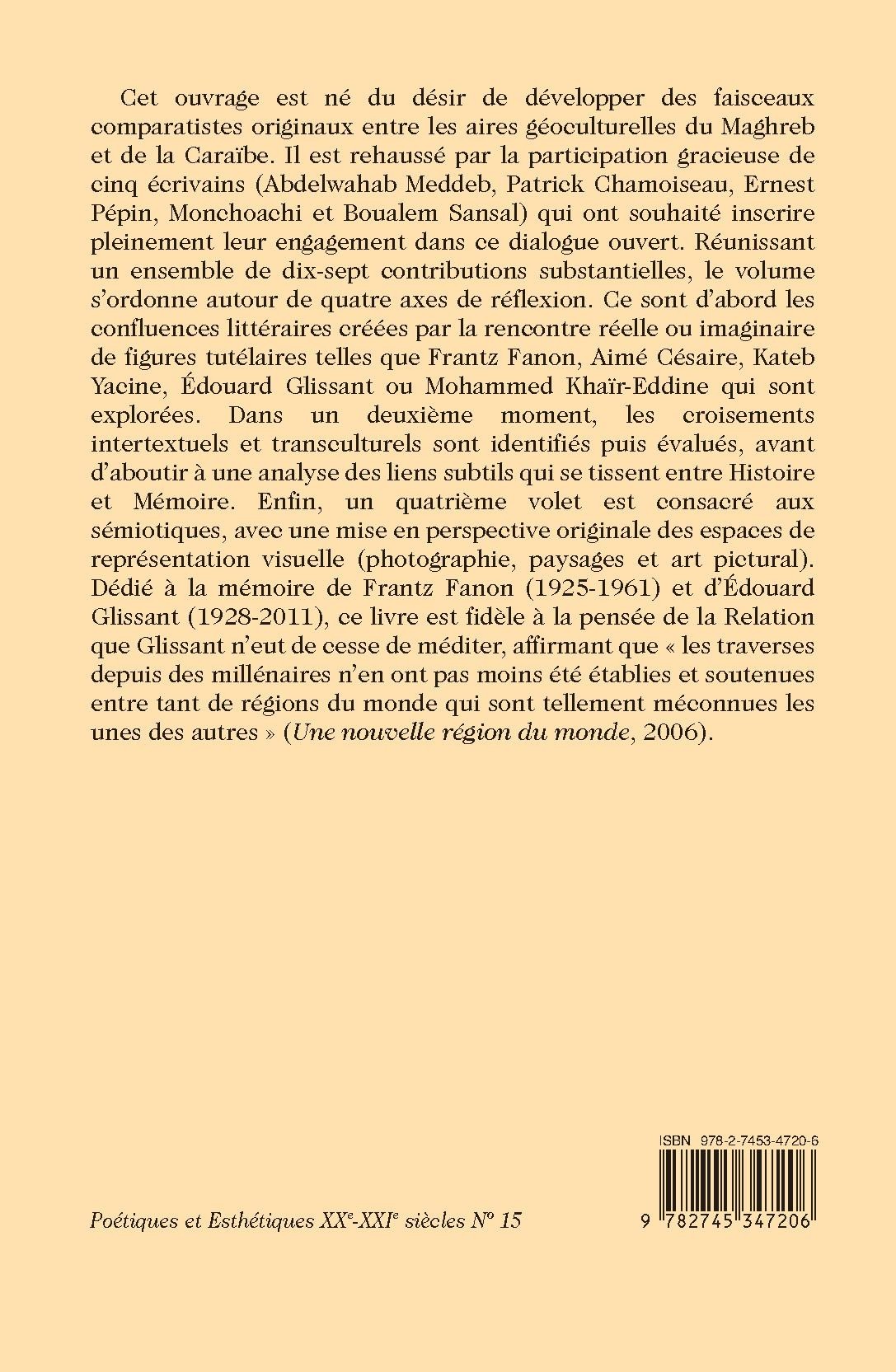 Cet ouvrage est né du désir de développer des faisceaux comparatistes originaux entre les aires géoculturelles du Maghreb et de la Caraïbe. Il est rehaussé par la participation gracieuse de cinq écrivains (Abdelwahab Meddeb, Patrick Chamoiseau, Ernest Pépin, Monchoachi et Boualem Sansal) qui ont souhaité inscrire pleinement leur engagement dans ce dialogue ouvert. Réunissant un ensemble de dix-sept contributions substantielles, le volume s’ordonne autour de quatre axes de réflexion. Ce sont d’abord les confluences littéraires créées par la rencontre réelle ou imaginaire de figures tutélaires telles que Frantz Fanon, Aimé Césaire, Kateb Yacine, Édouard Glissant ou Mohammed Khaïr-Eddine qui sont explorées. Dans un deuxième moment, les croisements intertextuels et transculturels sont identifiés puis évalués, avant d’aboutir à une analyse des liens subtils qui se tissent entre Histoire et Mémoire. Enfin, un quatrième volet est consacré aux sémiotiques, avec une mise en perspective originale des espaces de représentation visuelle (photographie, paysages et art pictural).