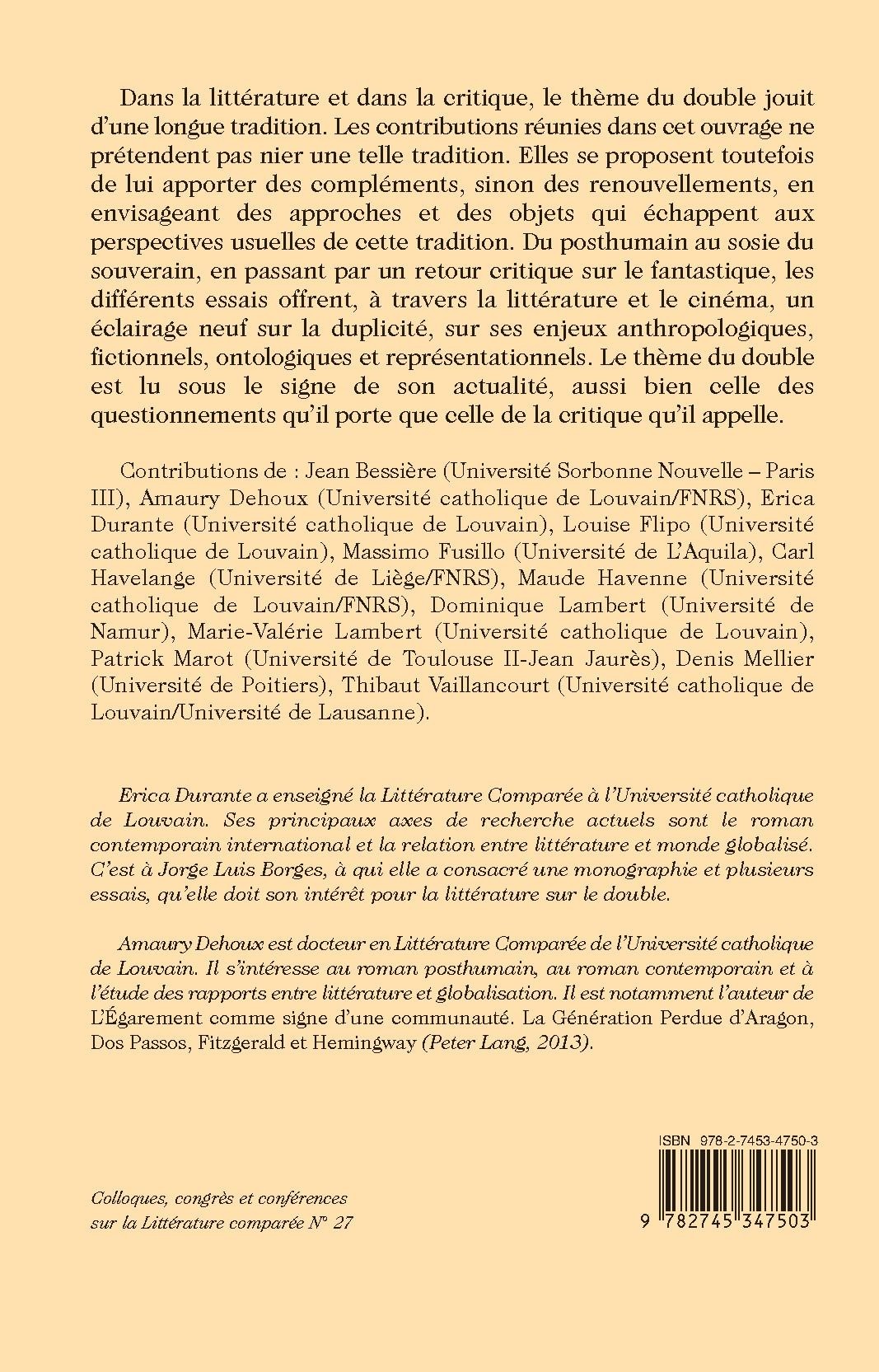 Dans la littérature et dans la critique, le thème du double jouit d’une longue tradition. Les contributions réunies dans cet ouvrage ne prétendent pas nier une telle tradition. Elles se proposent toutefois de lui apporter des compléments, sinon des renouvellements, en envisageant des approches et des objets qui échappent aux perspectives usuelles de cette tradition. Du posthumain au sosie du souverain, en passant par un retour critique sur le fantastique, les différents essais offrent, à travers la littérature et le cinéma, un éclairage neuf sur la duplicité, sur ses enjeux anthropologiques, fictionnels, ontologiques et représentationnels. Le thème du double est lu sous le signe de son actualité, aussi bien celle des questionnements qu’il porte que celle de la critique qu’il appelle.