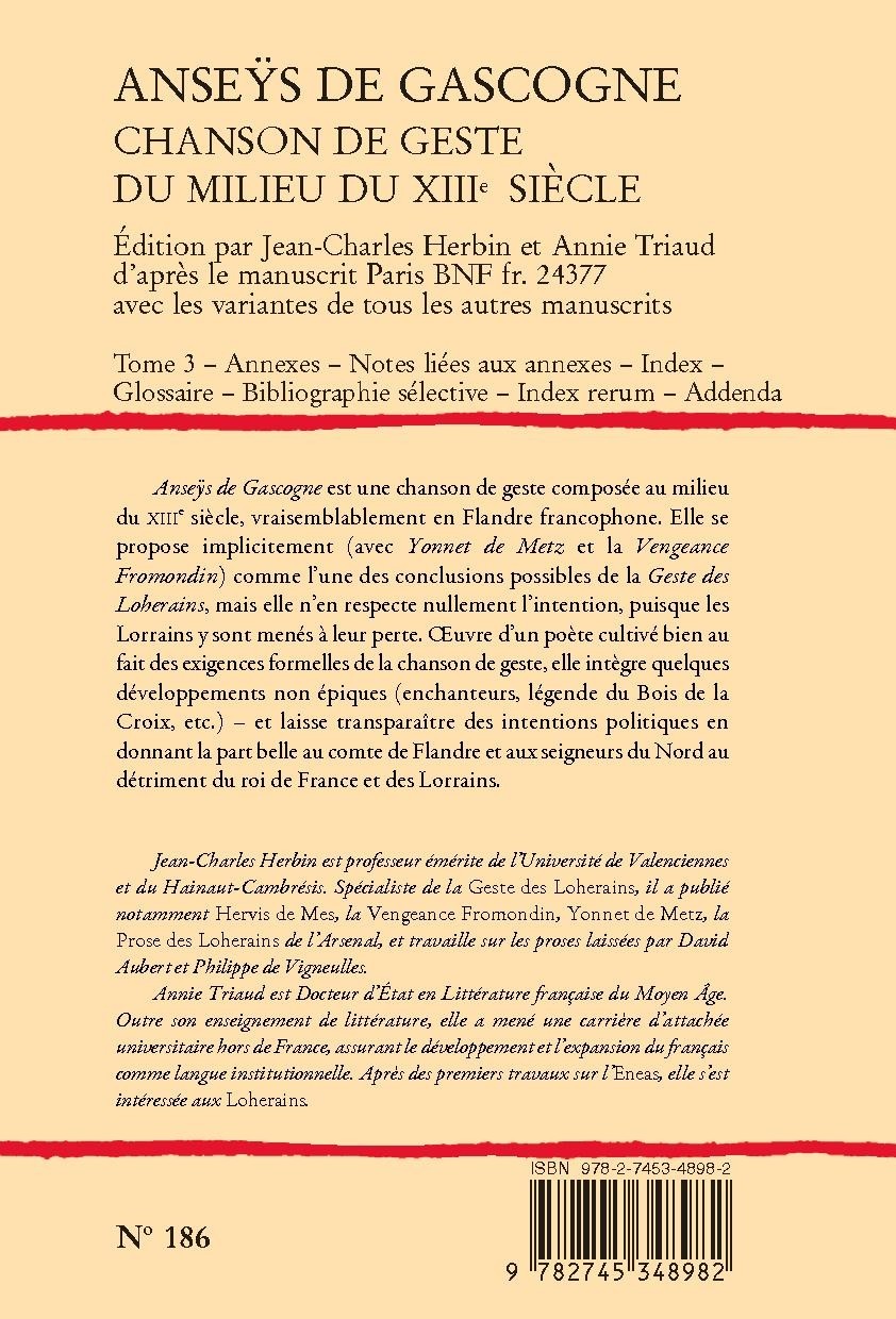 Jean-Charles Herbin est professeur émérite de l’Université de Valenciennes et du Hainaut-Cambrésis. Spécialiste de la Geste des Loherains, il a publié notamment Hervis de Mes, la Vengeance Fromondin, Yonnet de Metz, la Prose des Loherains de l’Arsenal, et travaille sur les proses laissées par David Aubert et Philippe de Vigneulles.