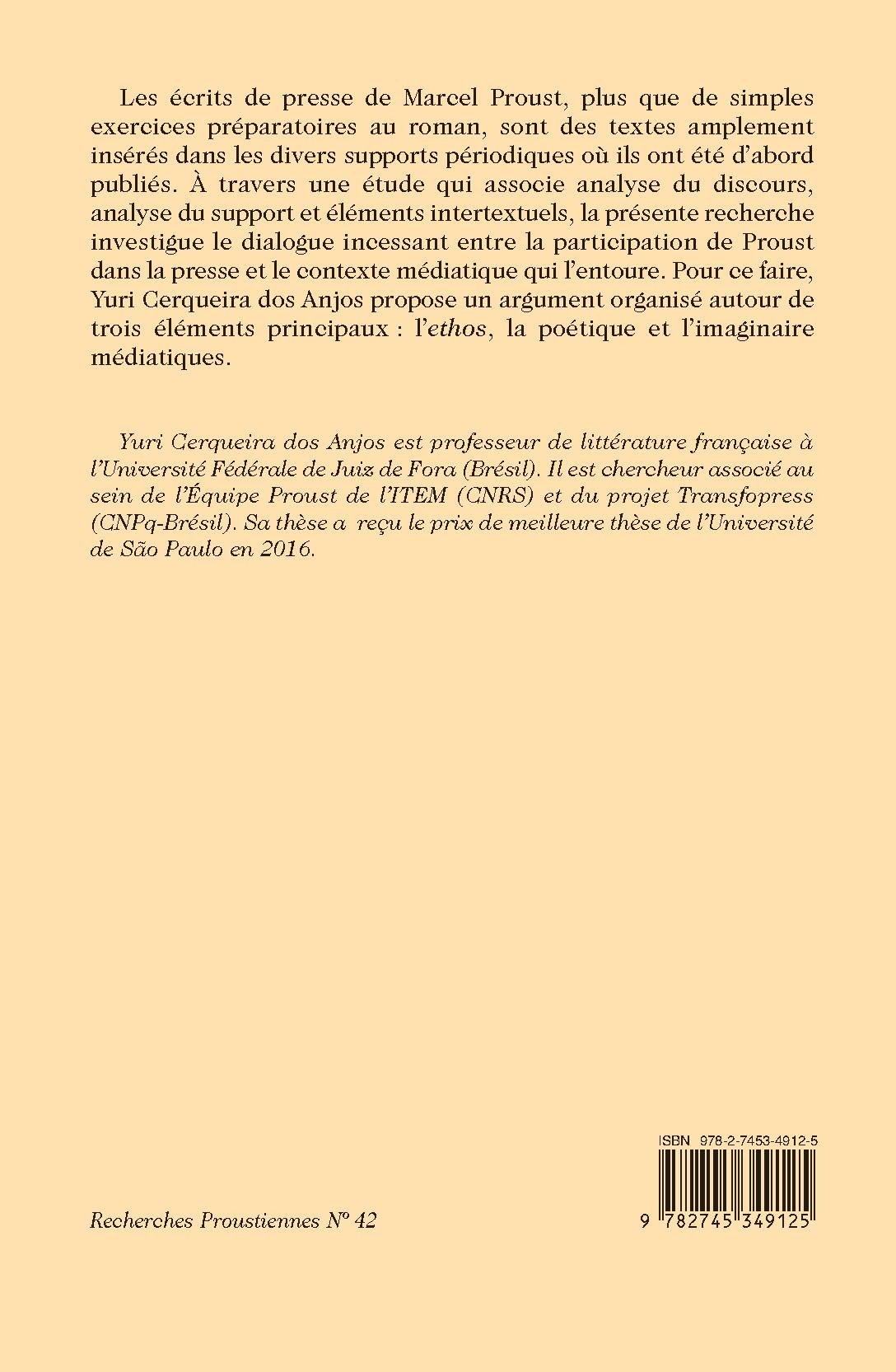 Les écrits de presse de Marcel Proust, plus que de simples exercices préparatoires au roman, sont des textes amplement insérés dans les divers supports périodiques où ils ont été d’abord publiés. À travers une étude qui associe analyse du discours, analyse du support et éléments intertextuels, la présente recherche investigue le dialogue incessant entre la participation de Proust dans la presse et le contexte médiatique qui l’entoure. Pour ce faire, Yuri Cerqueira dos Anjos propose un argument organisé autour de trois éléments principaux : l’ethos, la poétique et l’imaginaire médiatiques.
