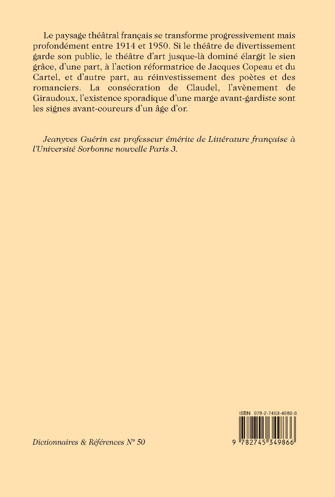 Le paysage théâtral français se transforme progressivement mais profondément entre 1914 et 1950. Si le théâtre de divertissement garde son public, le théâtre d’art jusque-là dominé élargit le sien grâce, d’une part, à l’action réformatrice de Jacques Copeau et du Cartel, et d’autre part, au réinvestissement des poètes et des romanciers. La consécration de Claudel, l’avènement de Giraudoux, l’existence sporadique d’une marge avant-gardiste sont les signes avant-coureurs d’un âge d’or.