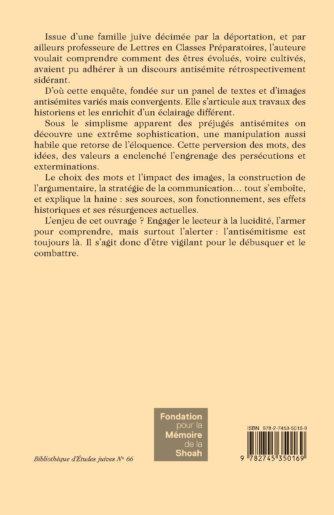 Issue d’une famille juive décimée par la déportation, et par ailleurs professeure de Lettres en Classes Préparatoires, l’auteure voulait comprendre comment des êtres évolués, voire cultivés, avaient pu adhérer à un discours antisémite rétrospectivement sidérant.