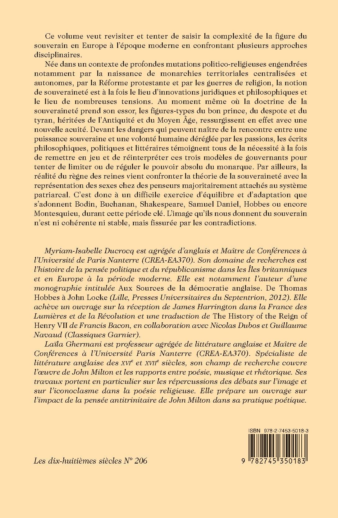 Née dans un contexte de profondes mutations politico-religieuses engendrées notamment par la naissance de monarchies territoriales centralisées et autonomes, par la Réforme protestante et par les guerres de religion, la notion de souveraineté est à la fois le lieu d’innovations juridiques et philosophiques et le lieu de nombreuses tensions. Au moment même où la doctrine de la souveraineté prend son essor, les figures-types du bon prince, du despote et du tyran, héritées de l’Antiquité et du Moyen Âge, ressurgissent en effet avec une nouvelle acuité. Devant les dangers qui peuvent naître de la rencontre entre une puissance souveraine et une volonté humaine déréglée par les passions, les écrits philosophiques, politiques et littéraires témoignent tous de la nécessité à la fois de remettre en jeu et de réinterpréter ces trois modèles de gouvernants pour tenter de limiter ou de réguler le pouvoir absolu du monarque. Par ailleurs, la réalité du règne des reines vient confronter la théorie de la souveraineté avec la représentation des sexes chez des penseurs majoritairement attachés au système patriarcal. C’est donc à un difficile exercice d’équilibre et d’adaptation que s’adonnent Bodin, Buchanan, Shakespeare, Samuel Daniel, Hobbes ou encore Montesquieu, durant cette période clé. L’image qu’ils nous donnent du souverain n’est ni cohérente ni stable, mais fissurée par les contradictions.