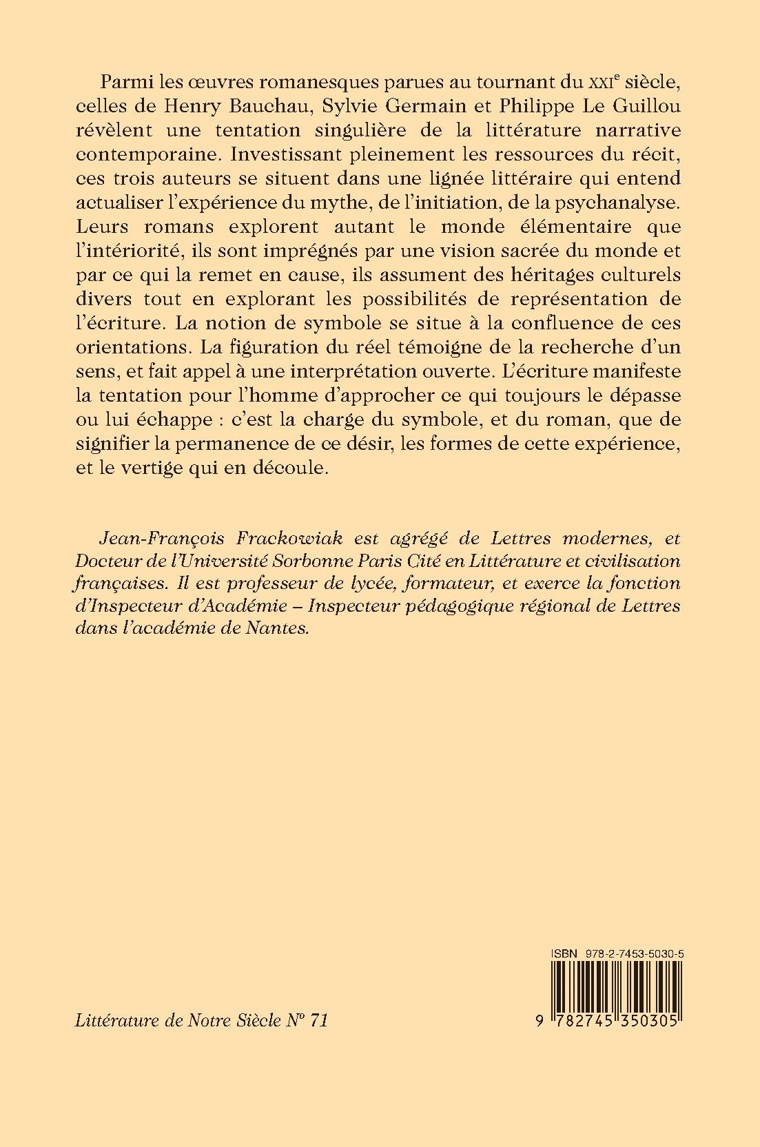 Parmi les œuvres romanesques parues au tournant du XXIe siècle, celles de Henry Bauchau, Sylvie Germain et Philippe Le Guillou révèlent une tentation singulière de la littérature narrative contemporaine. Investissant pleinement les ressources du récit, ces trois auteurs se situent dans une lignée littéraire qui entend actualiser l’expérience du mythe, de l’initiation, de la psychanalyse. Leurs romans explorent autant le monde élémentaire que l’intériorité, ils sont imprégnés par une vision sacrée du monde et par ce qui la remet en cause, ils assument des héritages culturels divers tout en explorant les possibilités de représentation de l’écriture. La notion de symbole se situe à la confluence de ces orientations. La figuration du réel témoigne de la recherche d’un sens, et fait appel à une interprétation ouverte. L’écriture manifeste la tentation pour l’homme d’approcher ce qui toujours le dépasse ou lui échappe : c’est la charge du symbole, et du roman, que de signifier la permanence de ce désir, les formes de cette expérience, et le vertige qui en découle.