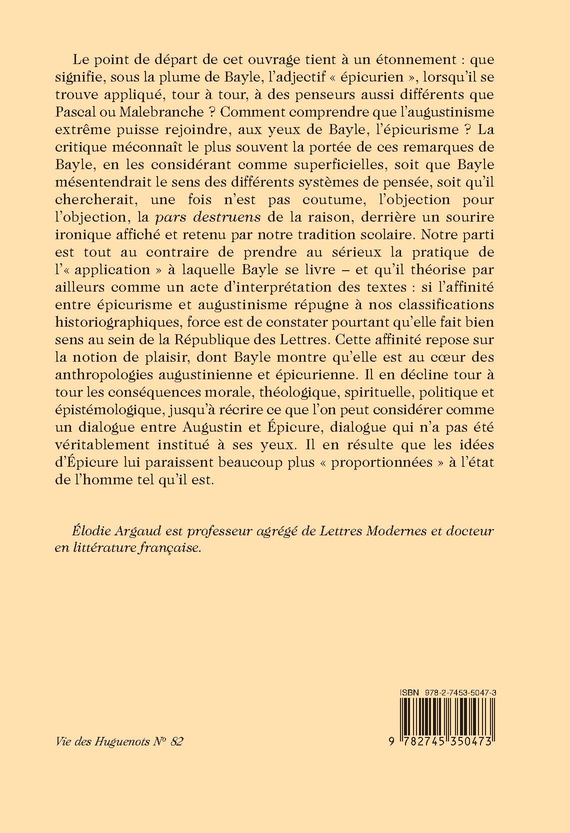 Le point de départ de cet ouvrage tient à un étonnement : que signifie, sous la plume de Bayle, l’adjectif « épicurien », lorsqu’il se trouve appliqué, tour à tour, à des penseurs aussi différents que Pascal ou Malebranche ? Comment comprendre que l’augustinisme extrême puisse rejoindre, aux yeux de Bayle, l’épicurisme ? La critique méconnaît le plus souvent la portée de ces remarques de Bayle, en les considérant comme superficielles, soit que Bayle mésentendrait le sens des différents systèmes de pensée, soit qu’il chercherait, une fois n’est pas coutume, l’objection pour l’objection, la pars destruens de la raison, derrière un sourire ironique affiché et retenu par notre tradition scolaire. Notre parti est tout au contraire de prendre au sérieux la pratique de l’« application » à laquelle Bayle se livre – et qu’il théorise par ailleurs comme un acte d’interprétation des textes : si l’affinité entre épicurisme et augustinisme répugne à nos classifications historiographiques, force est de constater pourtant qu’elle fait bien sens au sein de la République des Lettres. Cette affinité repose sur la notion de plaisir, dont Bayle montre qu’elle est au cœur des anthropologies augustinienne et épicurienne. Il en décline tour à tour les conséquences morale, théologique, spirituelle, politique et épistémologique, jusqu’à récrire ce que l’on peut considérer comme un dialogue entre Augustin et Épicure, dialogue qui n’a pas été véritablement institué à ses yeux. Il en résulte que les idées d’Épicure lui paraissent beaucoup plus « proportionnées » à l’état de l’homme tel qu’il est.