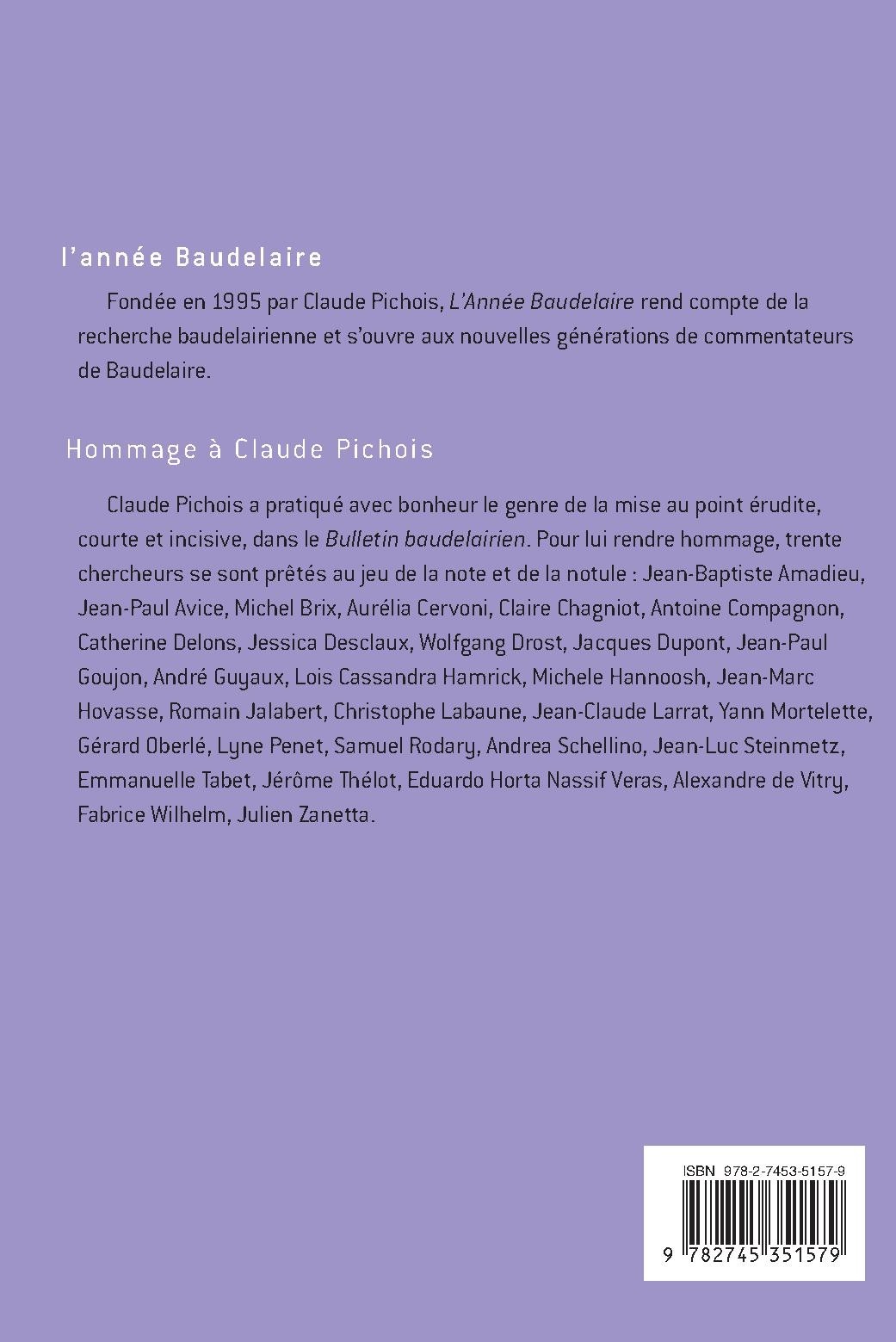 Claude Pichois a pratiqué avec bonheur le genre de la mise au point érudite, courte et incisive, dans le Bulletin baudelairien. Pour lui rendre hommage, trente chercheurs se sont prêtés au jeu de la note et de la notule : Jean-Baptiste Amadieu, Jean-Paul Avice, Michel Brix, Aurélia Cervoni, Claire Chagniot, Antoine Compagnon, Catherine Delons, Jessica Desclaux, Wolfgang Drost, Jacques Dupont, Jean-Paul Goujon, André Guyaux, Lois Cassandra Hamrick, Michele Hannoosh, Jean-Marc Hovasse, Romain Jalabert, Christophe Labaune, Jean-Claude Larrat, Yann Mortelette, Gérard Oberlé, Lyne Penet, Samuel Rodary, Andrea Schellino, Jean-Luc Steinmetz, Emmanuelle Tabet, Jérôme Thélot, Eduardo Horta Nassif Veras, Alexandre de Vitry, Fabrice Wilhelm, Julien Zanetta.