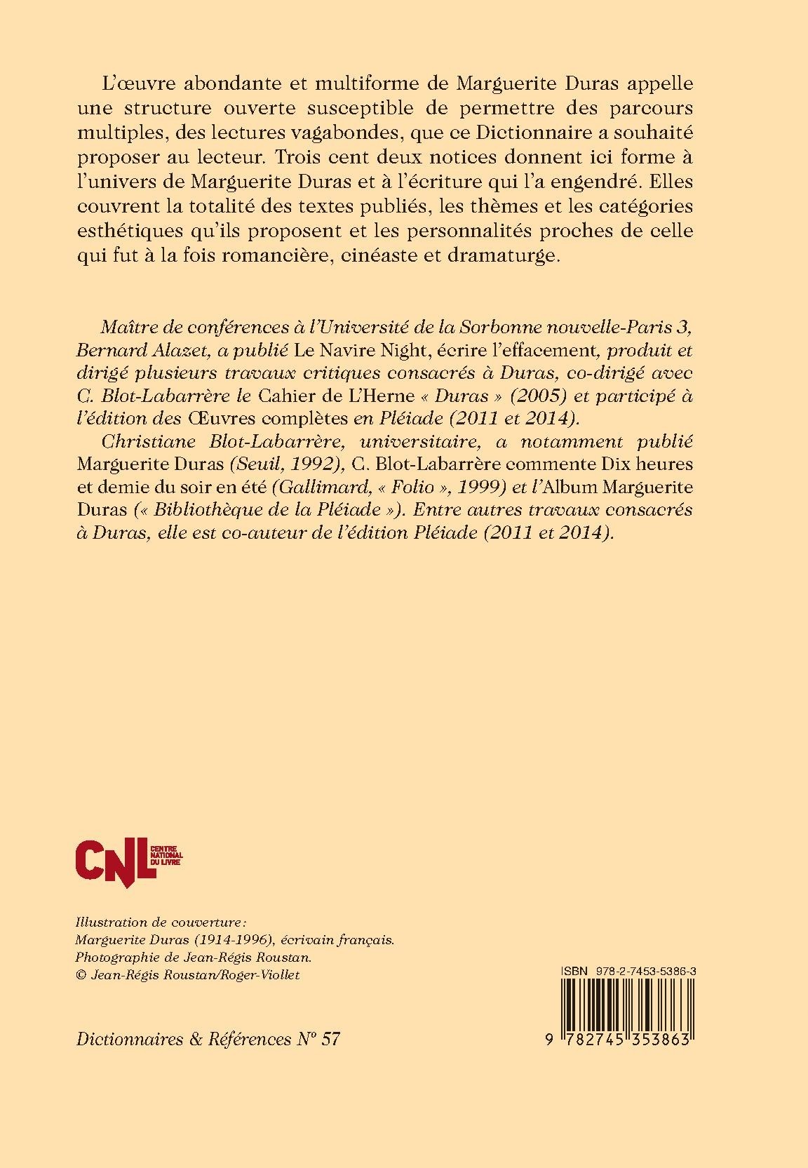 Christiane Blot-Labarrère, universitaire, a notamment publié Marguerite Duras (Seuil, 1992), C. Blot-Labarrère commente Dix heures et demie du soir en été (Gallimard, « Folio », 1999) et l’Album Marguerite Duras (« Bibliothèque de la Pléiade »). Entre autres travaux consacrés à Duras, elle est co-auteur de l’édition Pléiade (2011 et 2014).