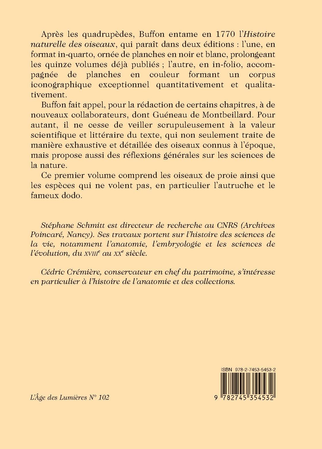 Buffon fait appel, pour la rédaction de certains chapitres, à de nouveaux collaborateurs, dont Guéneau de Montbeillard. Pour autant, il ne cesse de veiller scrupuleusement à la valeur scientifique et littéraire du texte, qui non seulement traite de manière exhaustive et détaillée des oiseaux connus à l’époque, mais propose aussi des réflexions générales sur les sciences de la nature.