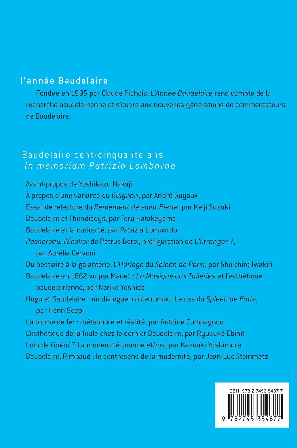 Fondée en 1995 par Claude Pichois, L’Année Baudelaire rend compte de la recherche baudelairienne et s’ouvre aux nouvelles générations de commentateurs de Baudelaire.