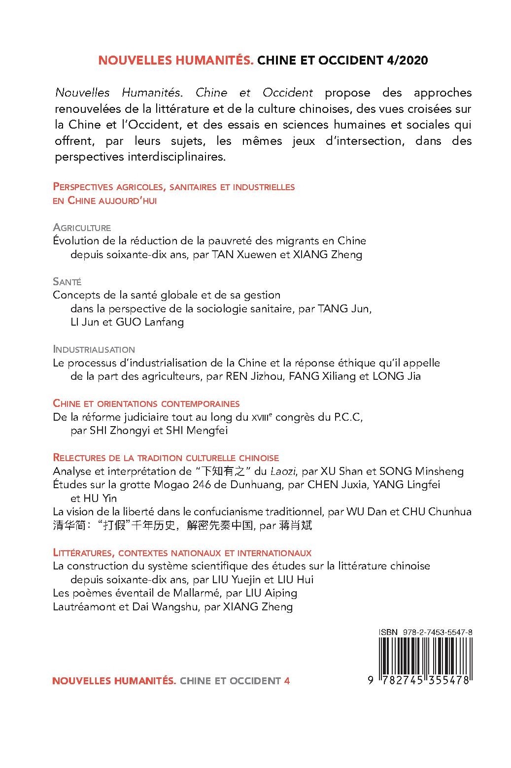 NOUVELLES HUMANITÉS. CHINE ET OCCIDENT 4/2020