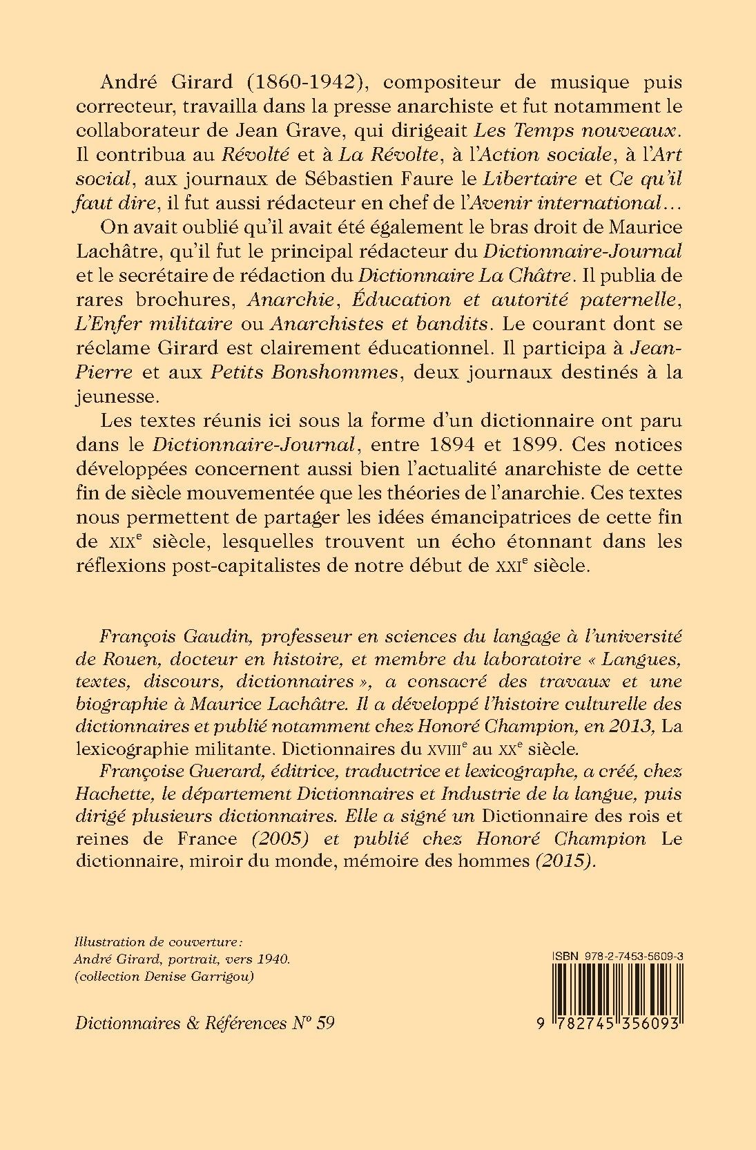 On avait oublié qu’il avait été également le bras droit de Maurice Lachâtre, qu’il fut le principal rédacteur du Dictionnaire-Journal et le secrétaire de rédaction du Dictionnaire La Châtre. Il publia de rares brochures, Anarchie, Éducation et autorité paternelle, L’Enfer militaire ou Anarchistes et bandits. Le courant dont se réclame Girard est clairement éducationnel. Il participa à Jean- Pierre et aux Petits Bonshommes, deux journaux destinés à la jeunesse.