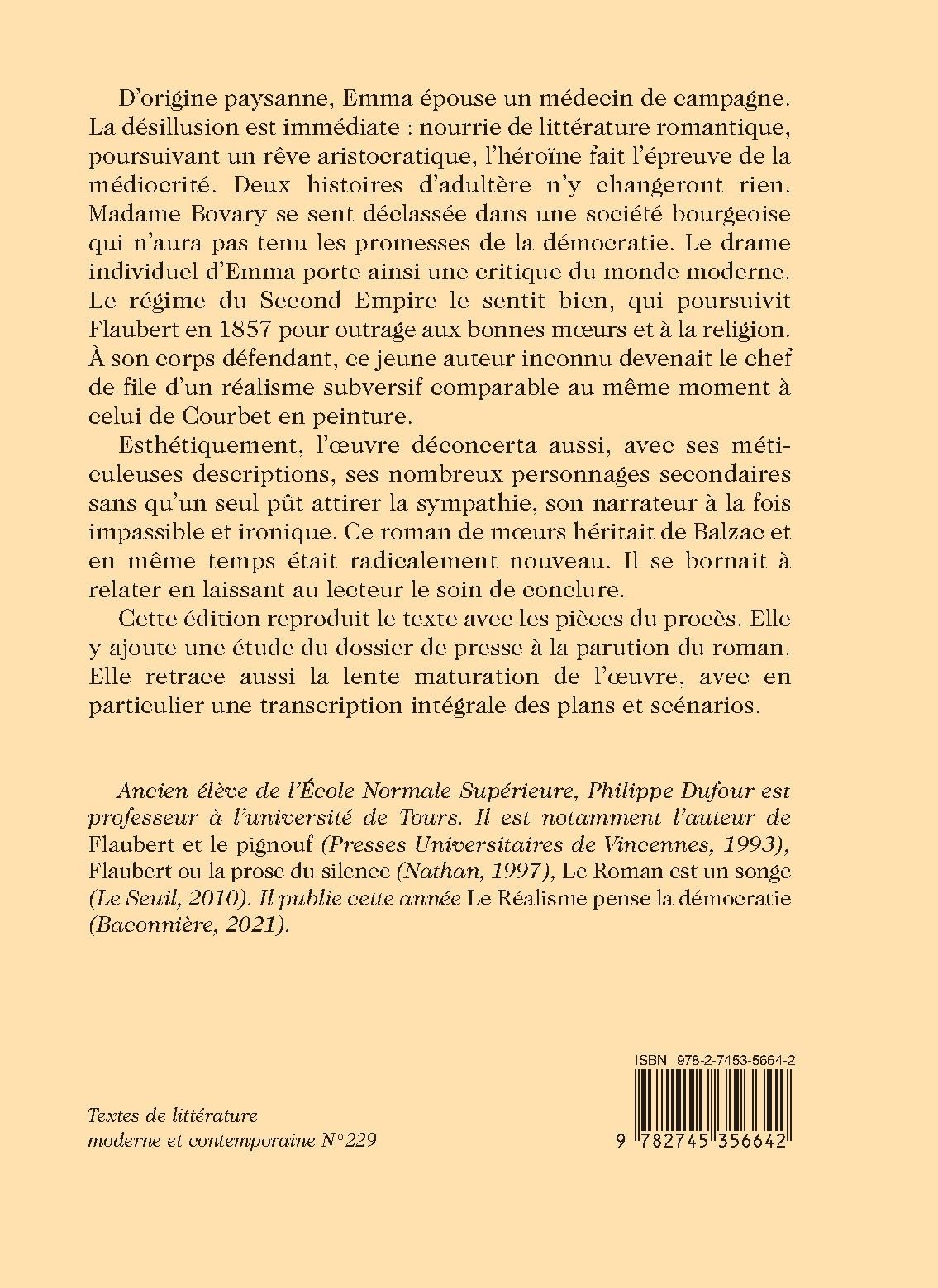 D’origine paysanne, Emma épouse un médecin de campagne. La désillusion est immédiate : nourrie de littérature romantique, poursuivant un rêve aristocratique, l’héroïne fait l’épreuve de la médiocrité. Deux histoires d’adultère n’y changeront rien. Madame Bovary se sent déclassée dans une société bourgeoise qui n’aura pas tenu les promesses de la démocratie. Le drame individuel d’Emma porte ainsi une critique du monde moderne. Le régime du Second Empire le sentit bien, qui poursuivit Flaubert en 1857 pour outrage aux bonnes mœurs et à la religion. À son corps défendant, ce jeune auteur inconnu devenait le chef de file d’un réalisme subversif comparable au même moment à celui de Courbet en peinture.