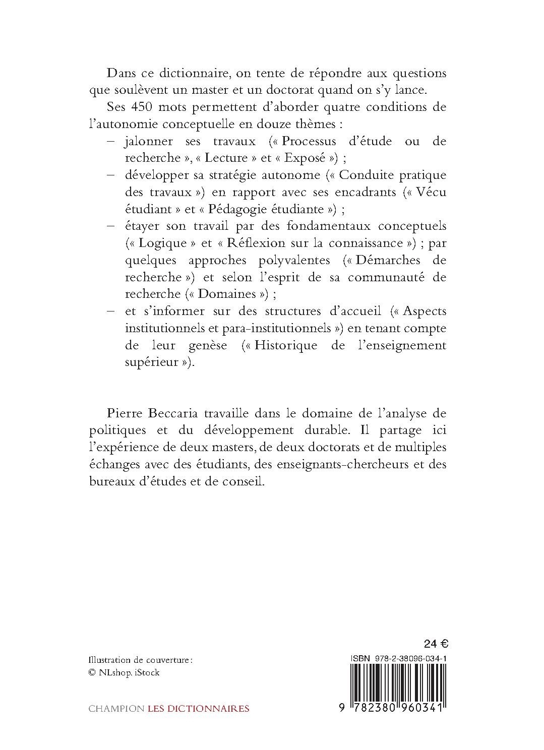 Dans ce dictionnaire, on tente de répondre aux questions que soulèvent un master et un doctorat quand on s’y lance.