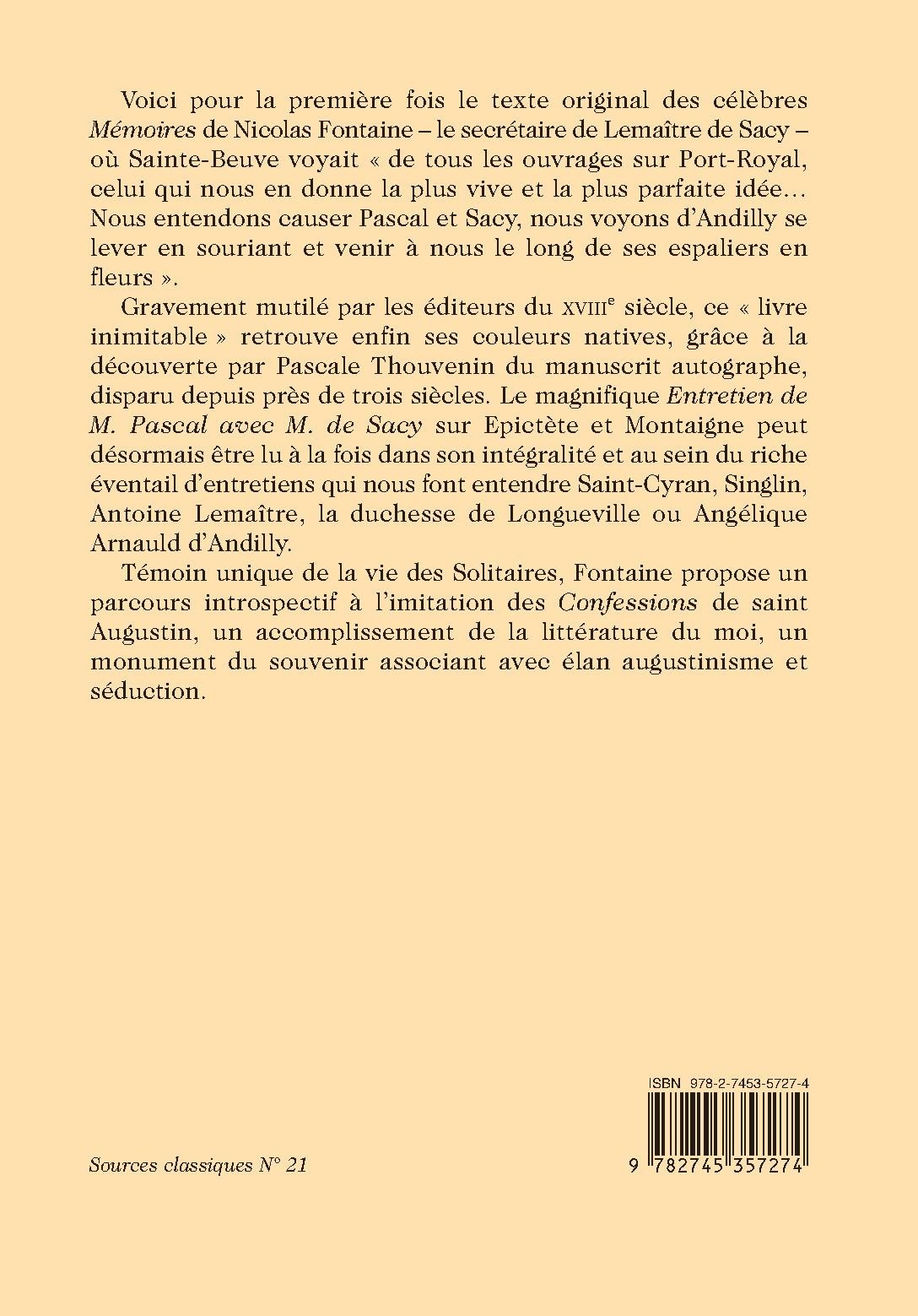 Témoin unique de la vie des Solitaires, Fontaine propose un parcours introspectif à l’imitation des Confessions de saint Augustin, un accomplissement de la littérature du moi, un monument du souvenir associant avec élan augustinisme et séduction.