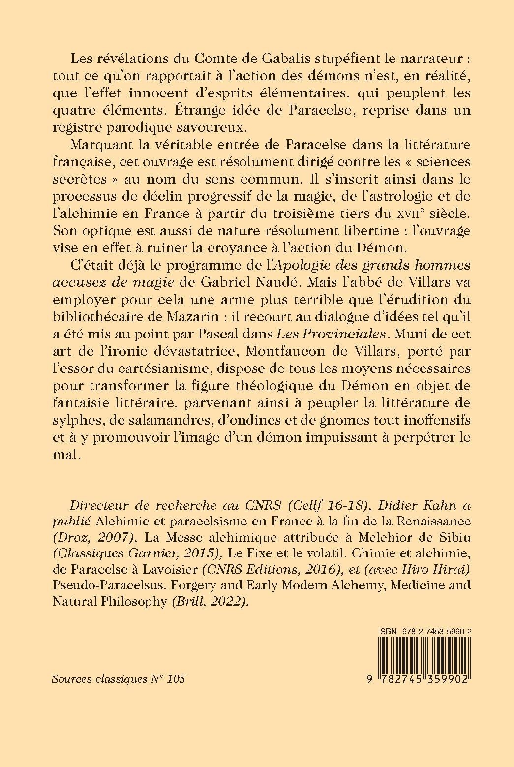C’était déjà le programme de l’Apologie des grands hommes accusez de magie de Gabriel Naudé. Mais l’abbé de Villars va employer pour cela une arme plus terrible que l’érudition du bibliothécaire de Mazarin : il recourt au dialogue d’idées tel qu’il a été mis au point par Pascal dans Les Provinciales. Muni de cet art de l’ironie dévastatrice, Montfaucon de Villars, porté par l’essor du cartésianisme, dispose de tous les moyens nécessaires pour transformer la figure théologique du Démon en objet de fantaisie littéraire, parvenant ainsi à peupler la littérature de sylphes, de salamandres, d’ondines et de gnomes tout inoffensifs et à y promouvoir l’image d’un démon impuissant à perpétrer le mal.