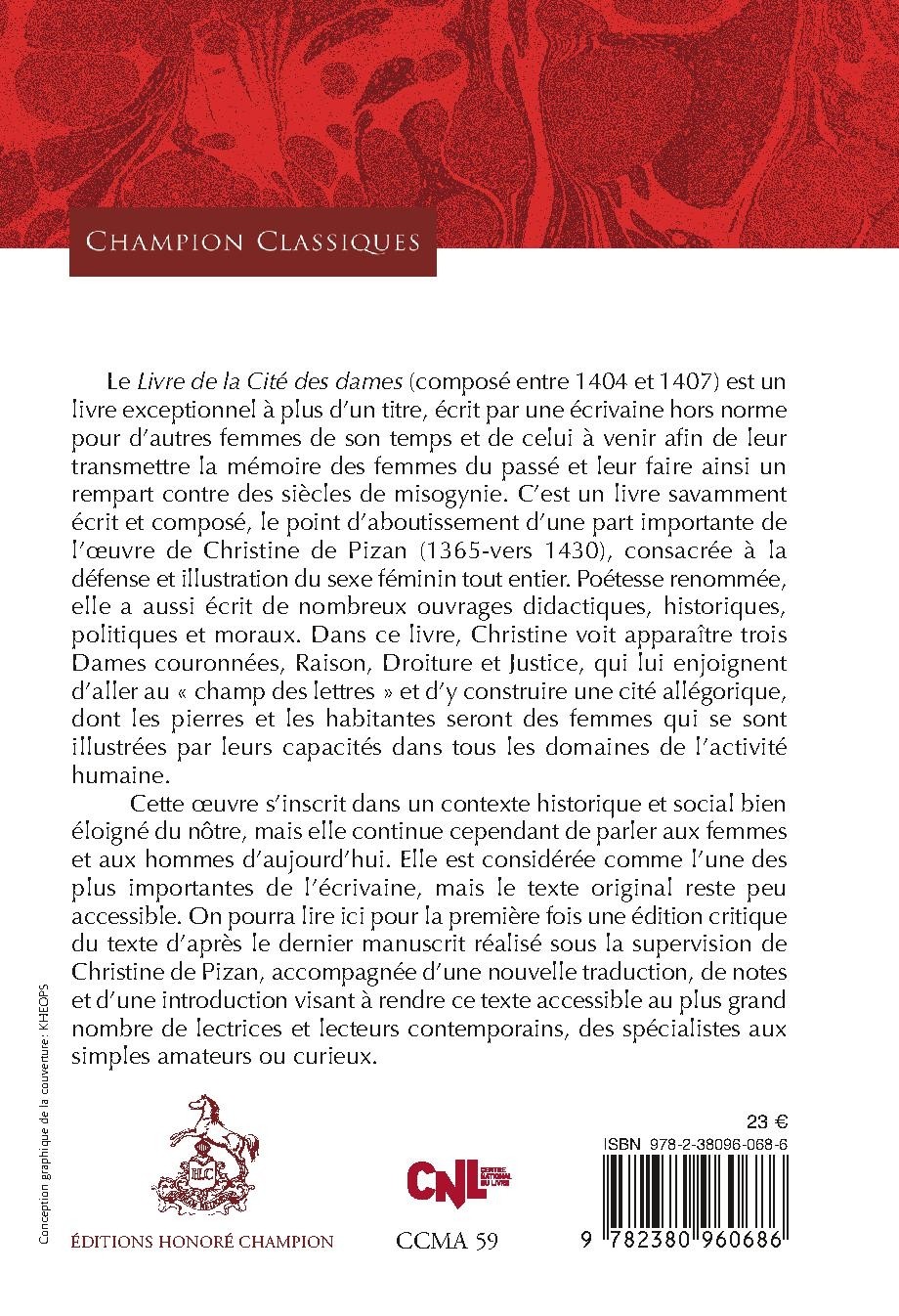 Cette œuvre s’inscrit dans un contexte historique et social bien éloigné du nôtre, mais elle continue cependant de parler aux femmes et aux hommes d’aujourd’hui. Elle est considérée comme l’une des plus importantes de l’écrivaine, mais le texte original reste peu accessible. On pourra lire ici pour la première fois une édition critique du texte d’après le dernier manuscrit réalisé sous la supervision de Christine de Pizan, accompagnée d’une nouvelle traduction, de notes et d’une introduction visant à rendre ce texte accessible au plus grand nombre de lectrices et lecteurs contemporains, des spécialistes aux simples amateurs ou curieux.