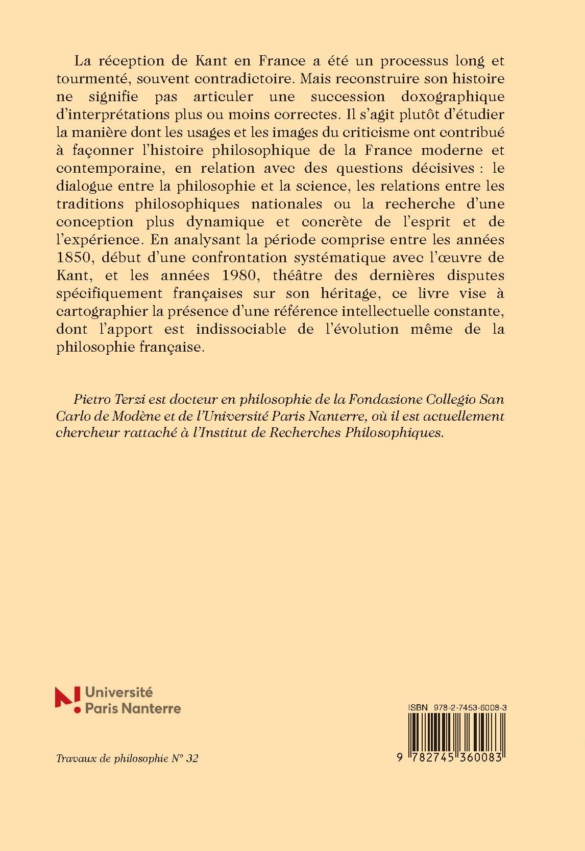 La réception de Kant en France a été un processus long et tourmenté, souvent contradictoire. Mais reconstruire son histoire ne signifie pas articuler une succession doxographique d’interprétations plus ou moins correctes. Il s’agit plutôt d’étudier la manière dont les usages et les images du criticisme ont contribué à façonner l’histoire philosophique de la France moderne et contemporaine, en relation avec des questions décisives : le dialogue entre la philosophie et la science, les relations entre les traditions philosophiques nationales ou la recherche d’une conception plus dynamique et concrète de l’esprit et de l’expérience. En analysant la période comprise entre les années 1850, début d’une confrontation systématique avec l’œuvre de Kant, et les années 1980, théâtre des dernières disputes spécifiquement françaises sur son héritage, ce livre vise à cartographier la présence d’une référence intellectuelle constante, dont l’apport est indissociable de l’évolution même de la philosophie française.