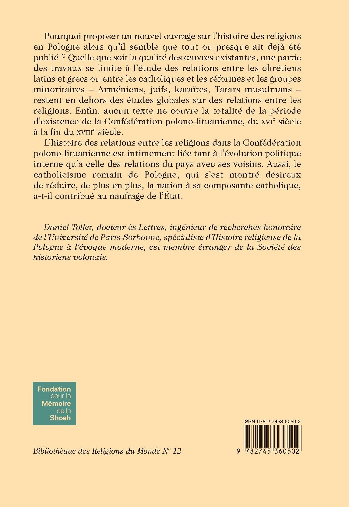 Pourquoi proposer un nouvel ouvrage sur l’histoire des religions en Pologne alors qu’il semble que tout ou presque ait déjà été publié ? Quelle que soit la qualité des œuvres existantes, une partie des travaux se limite à l’étude des relations entre les chrétiens latins et grecs ou entre les catholiques et les réformés et les groupes minoritaires – Arméniens, juifs, karaïtes, Tatars musulmans – restent en dehors des études globales sur des relations entre les religions. Enfin, aucun texte ne couvre la totalité de la période d’existence de la Confédération polono-lituanienne, du XVIe siècle à la fin du XVIIIe siècle.