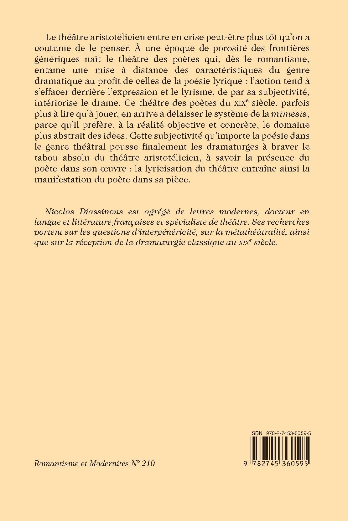 Le théâtre aristotélicien entre en crise peut-être plus tôt qu’on a coutume de le penser. À une époque de porosité des frontières génériques naît le théâtre des poètes qui, dès le romantisme, entame une mise à distance des caractéristiques du genre dramatique au profit de celles de la poésie lyrique : l’action tend à s’effacer derrière l’expression et le lyrisme, de par sa subjectivité, intériorise le drame. Ce théâtre des poètes du XIXe siècle, parfois plus à lire qu’à jouer, en arrive à délaisser le système de la mimesis, parce qu’il préfère, à la réalité objective et concrète, le domaine plus abstrait des idées. Cette subjectivité qu’importe la poésie dans le genre théâtral pousse finalement les dramaturges à braver le tabou absolu du théâtre aristotélicien, à savoir la présence du poète dans son œuvre : la lyricisation du théâtre entraîne ainsi la manifestation du poète dans sa pièce.
