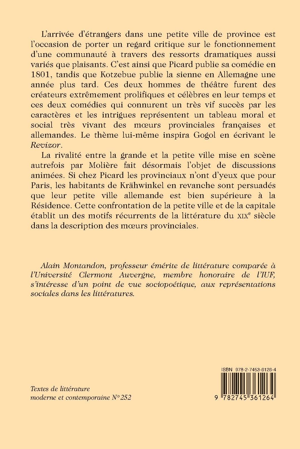 L’arrivée d’étrangers dans une petite ville de province est l’occasion de porter un regard critique sur le fonctionnement d’une communauté à travers des ressorts dramatiques aussi variés que plaisants. C’est ainsi que Picard publie sa comédie en 1801, tandis que Kotzebue publie la sienne en Allemagne une année plus tard. Ces deux hommes de théâtre furent des créateurs extrêmement prolifiques et célèbres en leur temps et ces deux comédies qui connurent un très vif succès par les caractères et les intrigues représentent un tableau moral et social très vivant des mœurs provinciales françaises et allemandes. Le thème lui-même inspira Gogol en écrivant le Revizor.