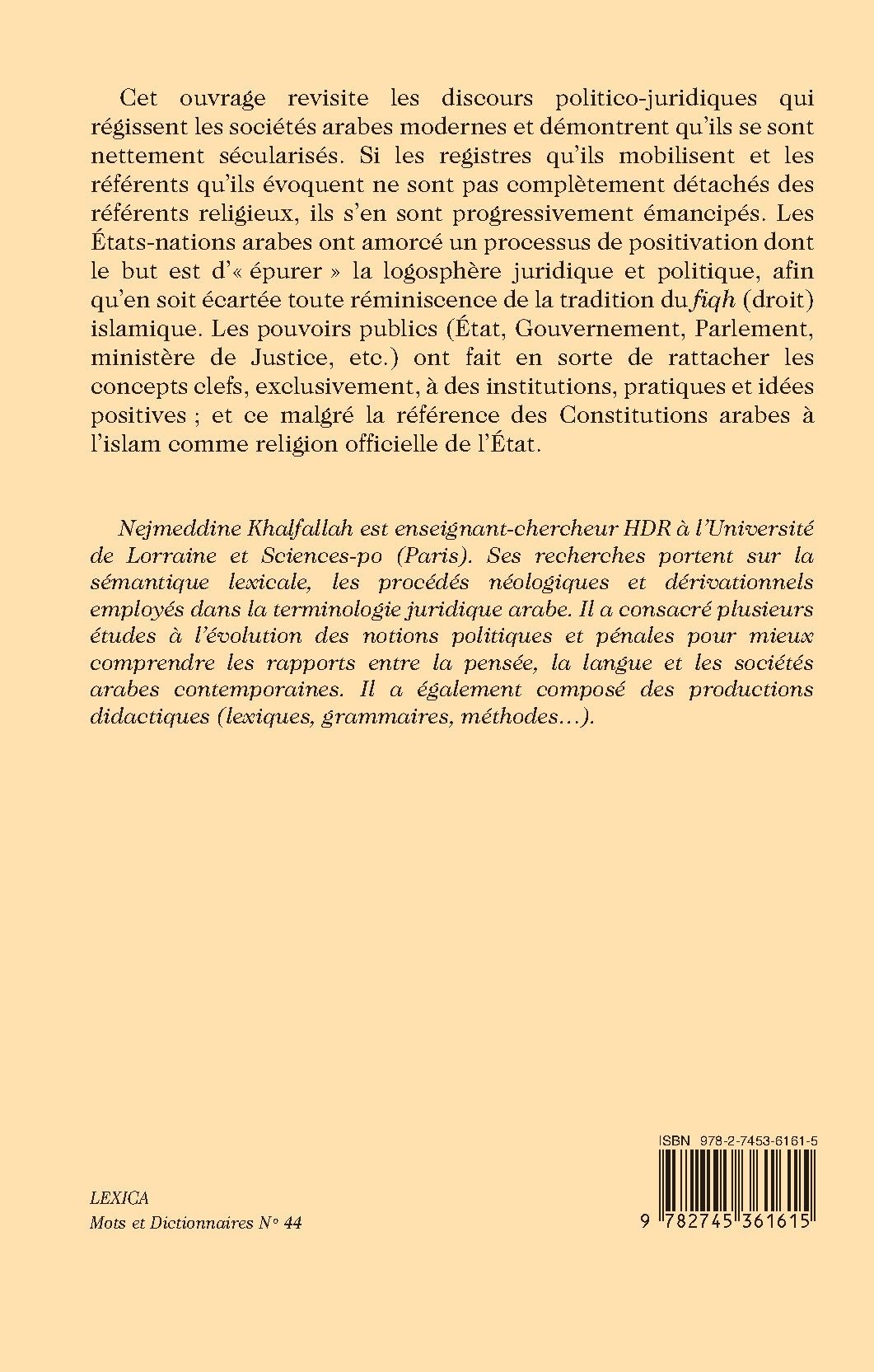Cet ouvrage revisite les discours politico-juridiques qui régissent les sociétés arabes modernes et démontrent qu’ils se sont nettement sécularisés. Si les registres qu’ils mobilisent et les référents qu’ils évoquent ne sont pas complètement détachés des référents religieux, ils s’en sont progressivement émancipés. Les États-nations arabes ont amorcé un processus de positivation dont le but est d’« épurer » la logosphère juridique et politique, afin qu’en soit écartée toute réminiscence de la tradition du fiqh (droit) islamique. Les pouvoirs publics (État, Gouvernement, Parlement, ministère de Justice, etc.) ont fait en sorte de rattacher les concepts clefs, exclusivement, à des institutions, pratiques et idées positives ; et ce malgré la référence des Constitutions arabes à l’islam comme religion officielle de l’État.