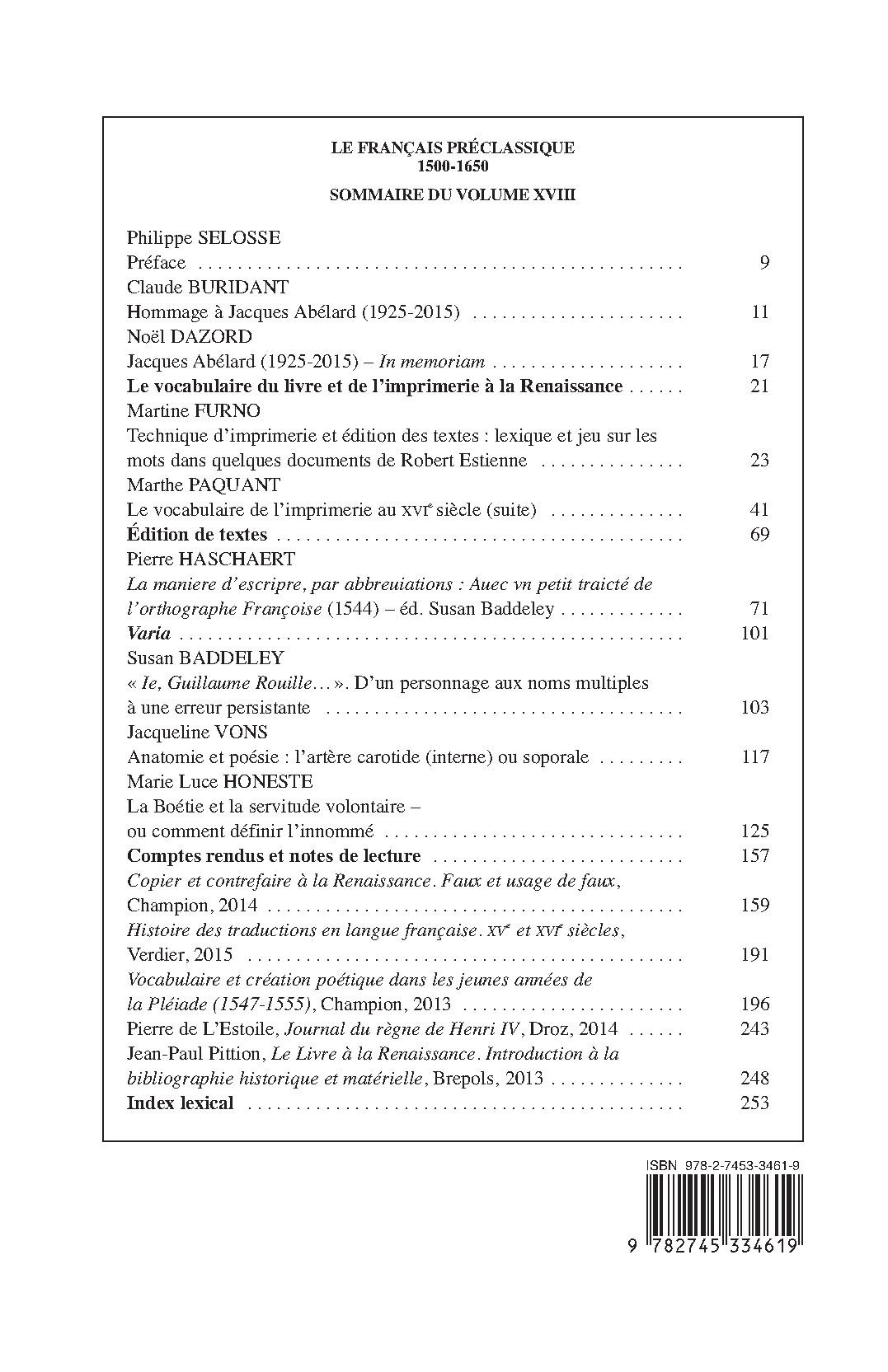 | Collection | LE FRANCAIS PRECLASSIQUE |