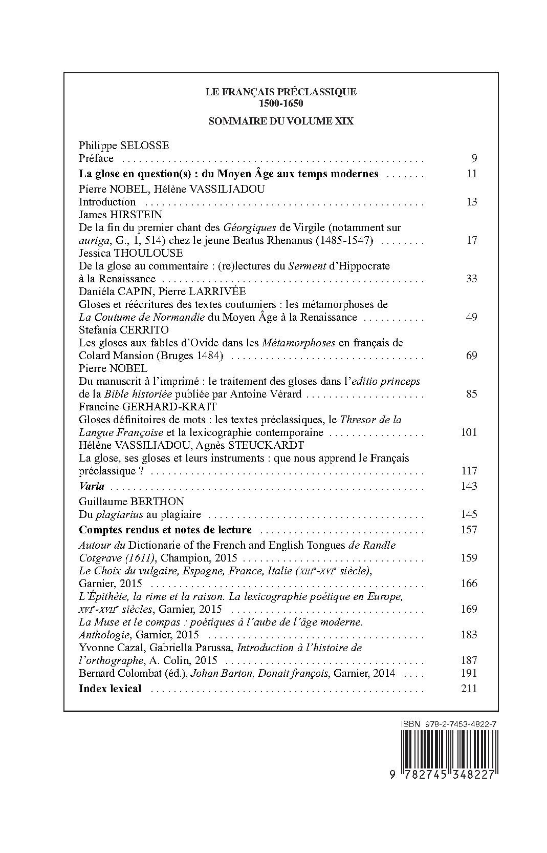 | Collection | LE FRANCAIS PRECLASSIQUE |
