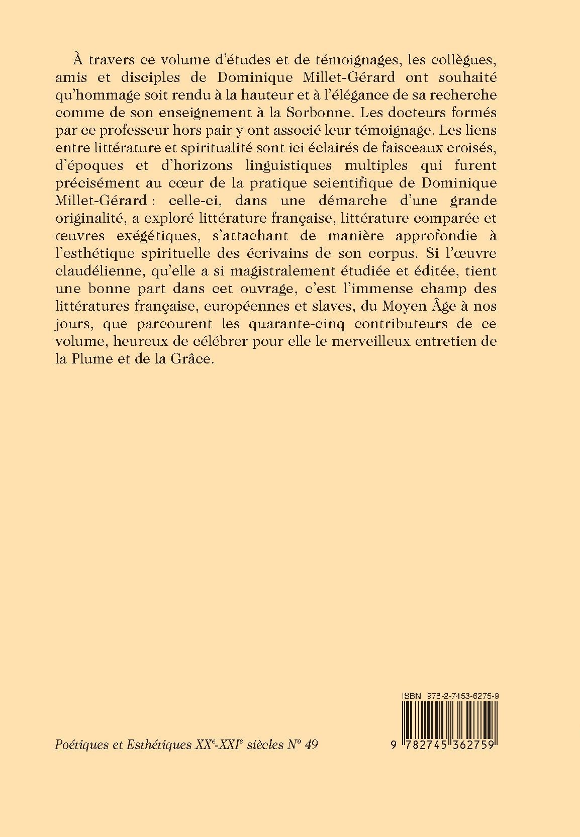 À travers ce volume d’études et de témoignages, les collègues, amis et disciples de Dominique Millet-Gérard ont souhaité qu’hommage soit rendu à la hauteur et à l’élégance de sa recherche comme de son enseignement à la Sorbonne. Les docteurs formés par ce professeur hors pair y ont associé leur témoignage. Les liens entre littérature et spiritualité sont ici éclairés de faisceaux croisés, d’époques et d’horizons linguistiques multiples qui furent précisément au cœur de la pratique scientifique de Dominique Millet-Gérard : celle-ci, dans une démarche d’une grande originalité, a exploré littérature française, littérature comparée et œuvres exégétiques, s’attachant de manière approfondie à l’esthétique spirituelle des écrivains de son corpus. Si l’œuvre claudélienne, qu’elle a si magistralement étudiée et éditée, tient une bonne part dans cet ouvrage, c’est l’immense champ des littératures française, européennes et slaves, du Moyen Âge à nos jours, que parcourent les quarante-cinq contributeurs de ce volume, heureux de célébrer pour elle le merveilleux entretien de la Plume et de la Grâce.