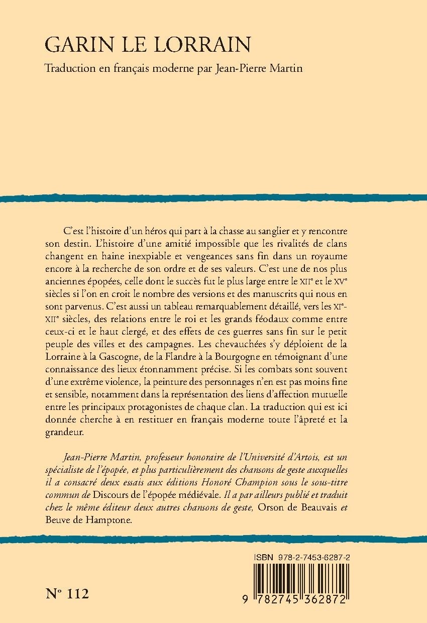 Jean-Pierre Martin, professeur honoraire de l’Université d’Artois, est un spécialiste de l’épopée, et plus particulièrement des chansons de geste auxquelles il a consacré deux essais aux éditions Honoré Champion sous le sous-titre commun de Discours de l’épopée médiévale. Il a par ailleurs publié et traduit chez le même éditeur deux autres chansons de geste, Orson de Beauvais et Beuve de Hamptone.