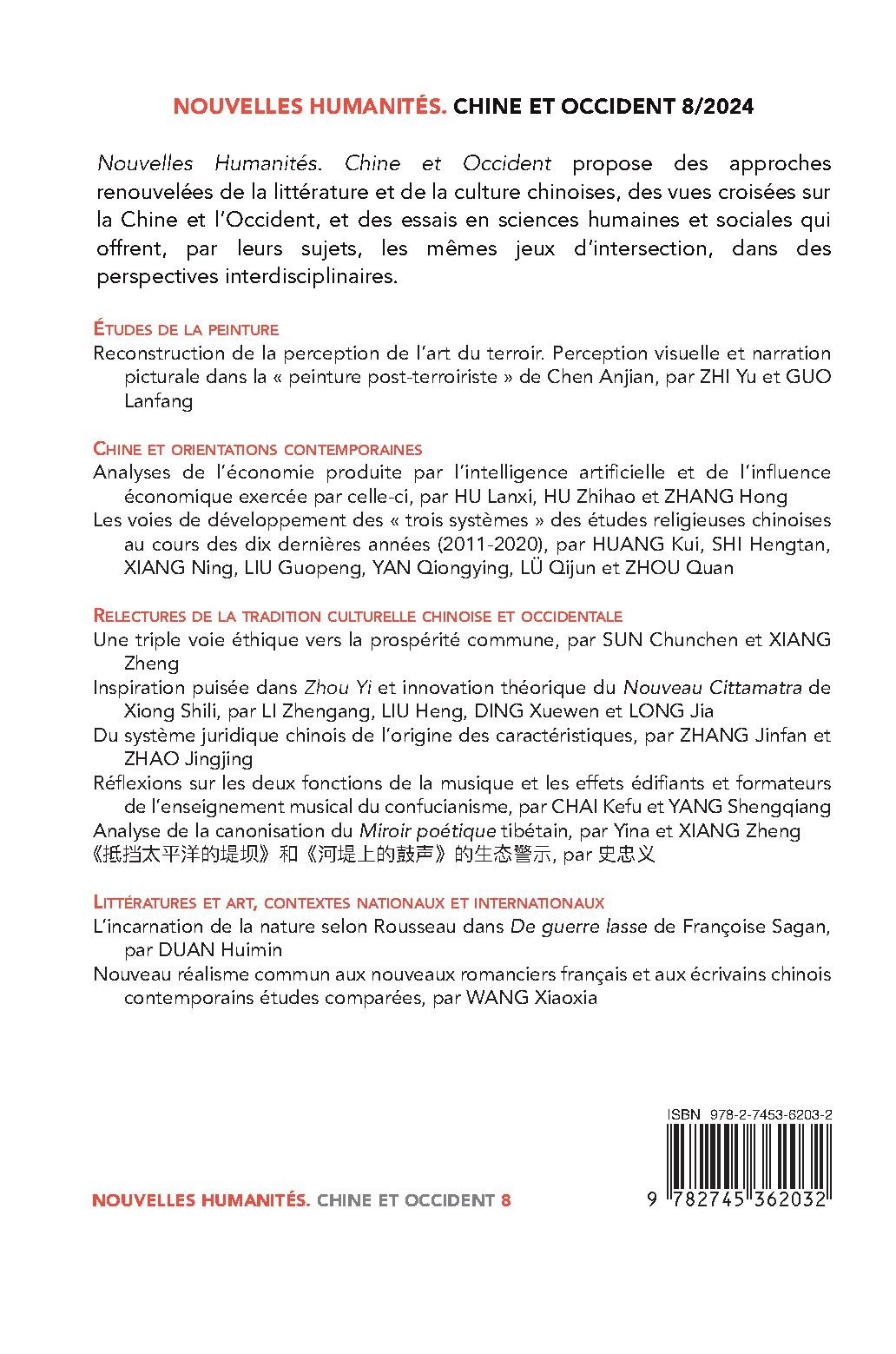 NOUVELLES HUMANITÉS. CHINE ET OCCIDENT 8/2024