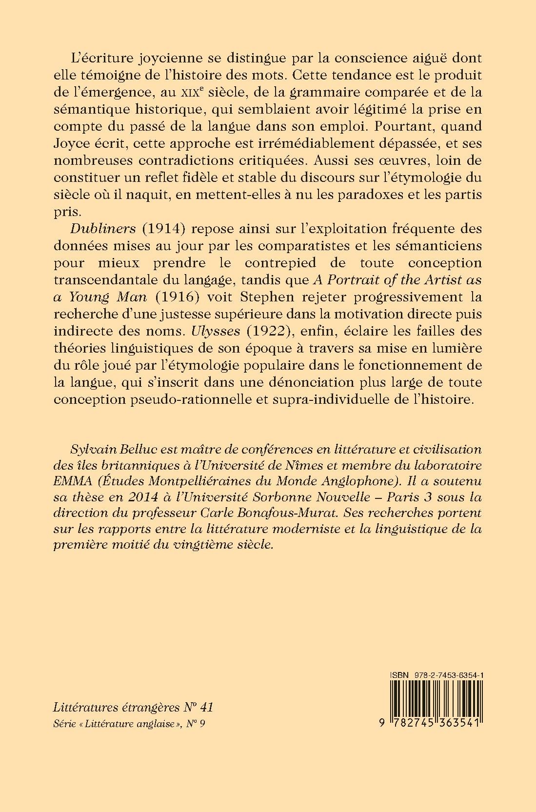 L’écriture joycienne se distingue par la conscience aiguë dont elle témoigne de l’histoire des mots. Cette tendance est le produit de l’émergence, au XIXe siècle, de la grammaire comparée et de la sémantique historique, qui semblaient avoir légitimé la prise en compte du passé de la langue dans son emploi. Pourtant, quand Joyce écrit, cette approche est irrémédiablement dépassée, et ses nombreuses contradictions critiquées. Aussi ses œuvres, loin de constituer un reflet fidèle et stable du discours sur l’étymologie du siècle où il naquit, en mettent-elles à nu les paradoxes et les partis pris.